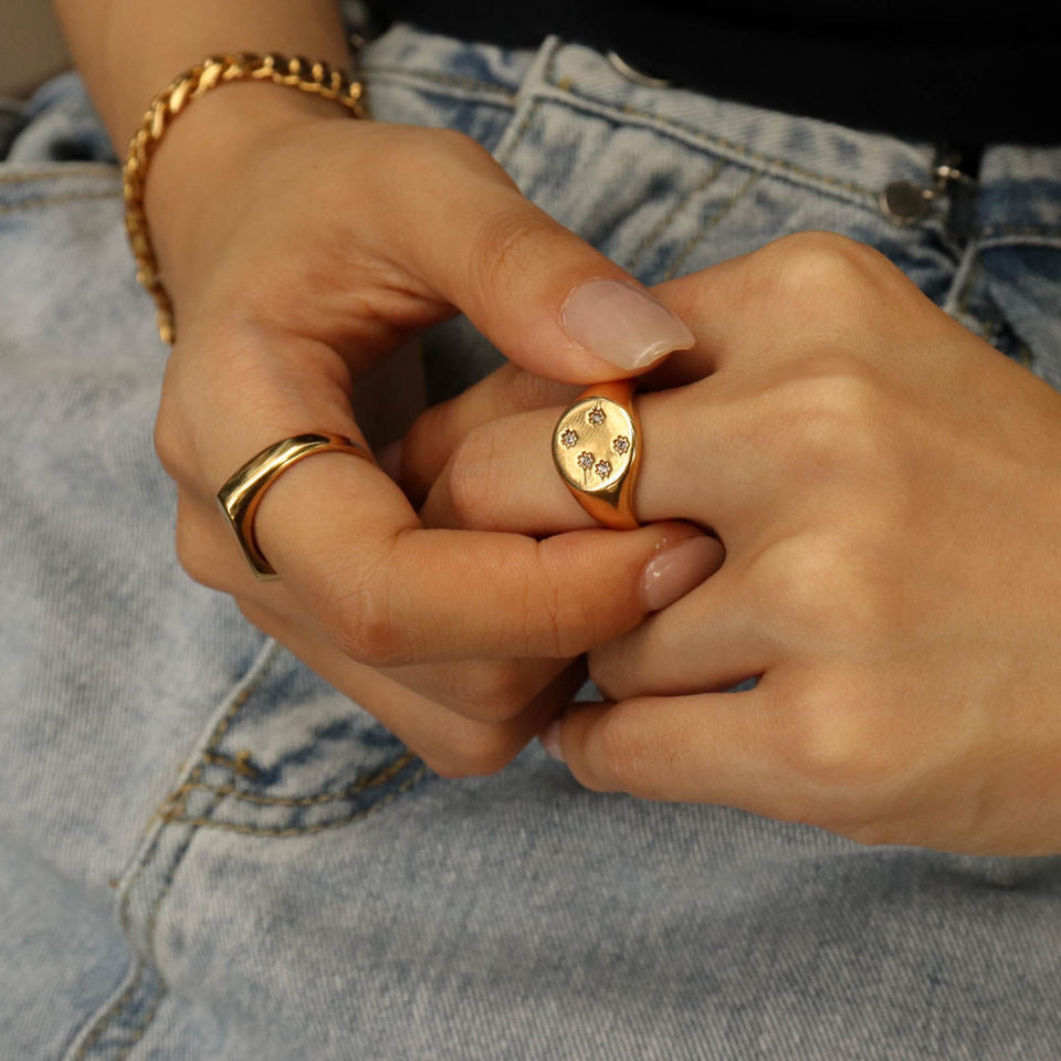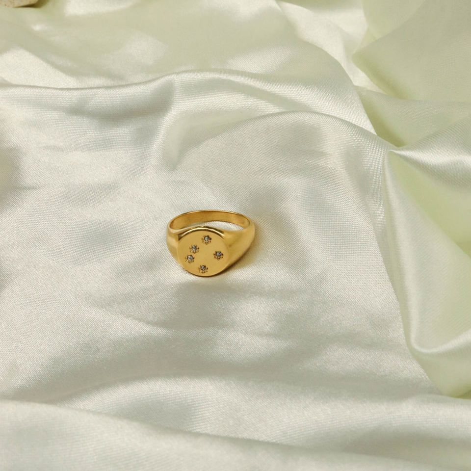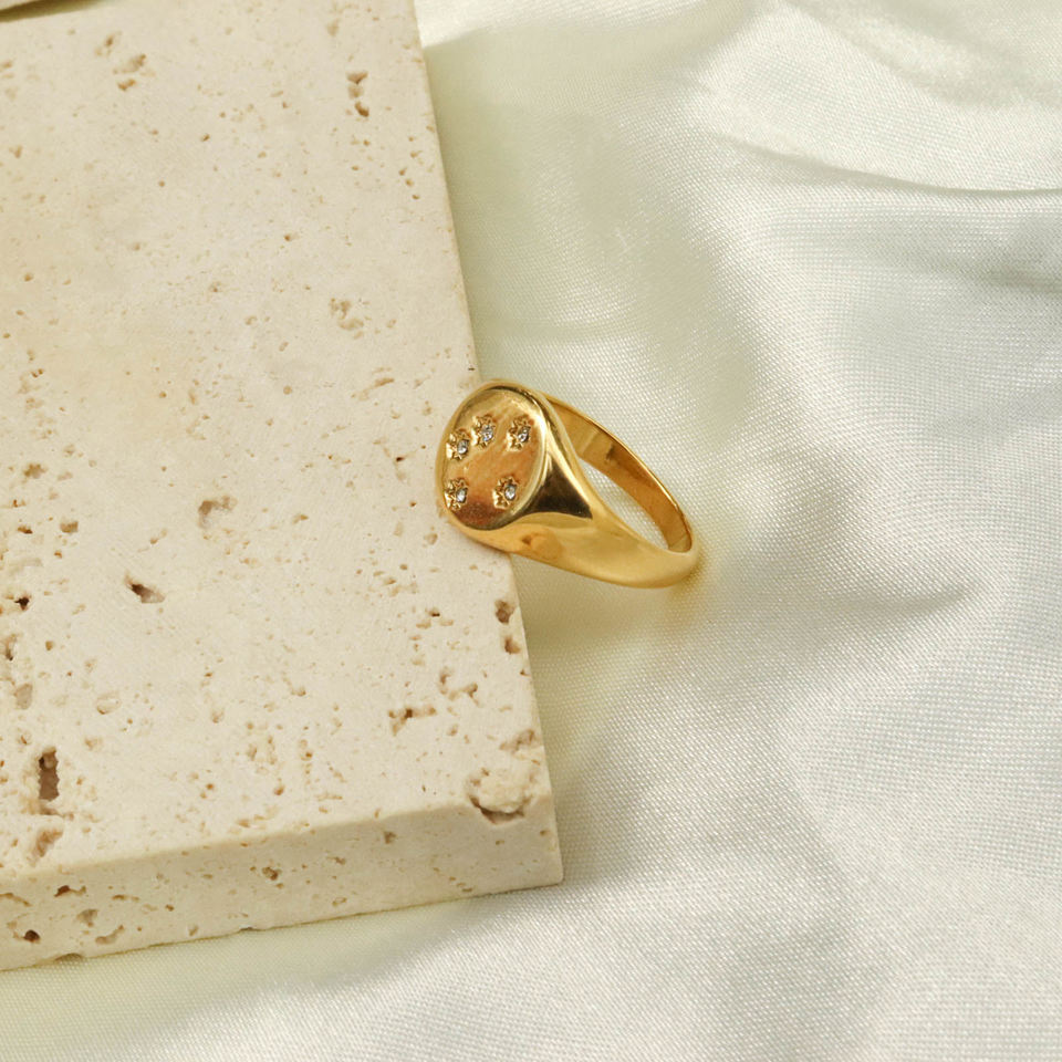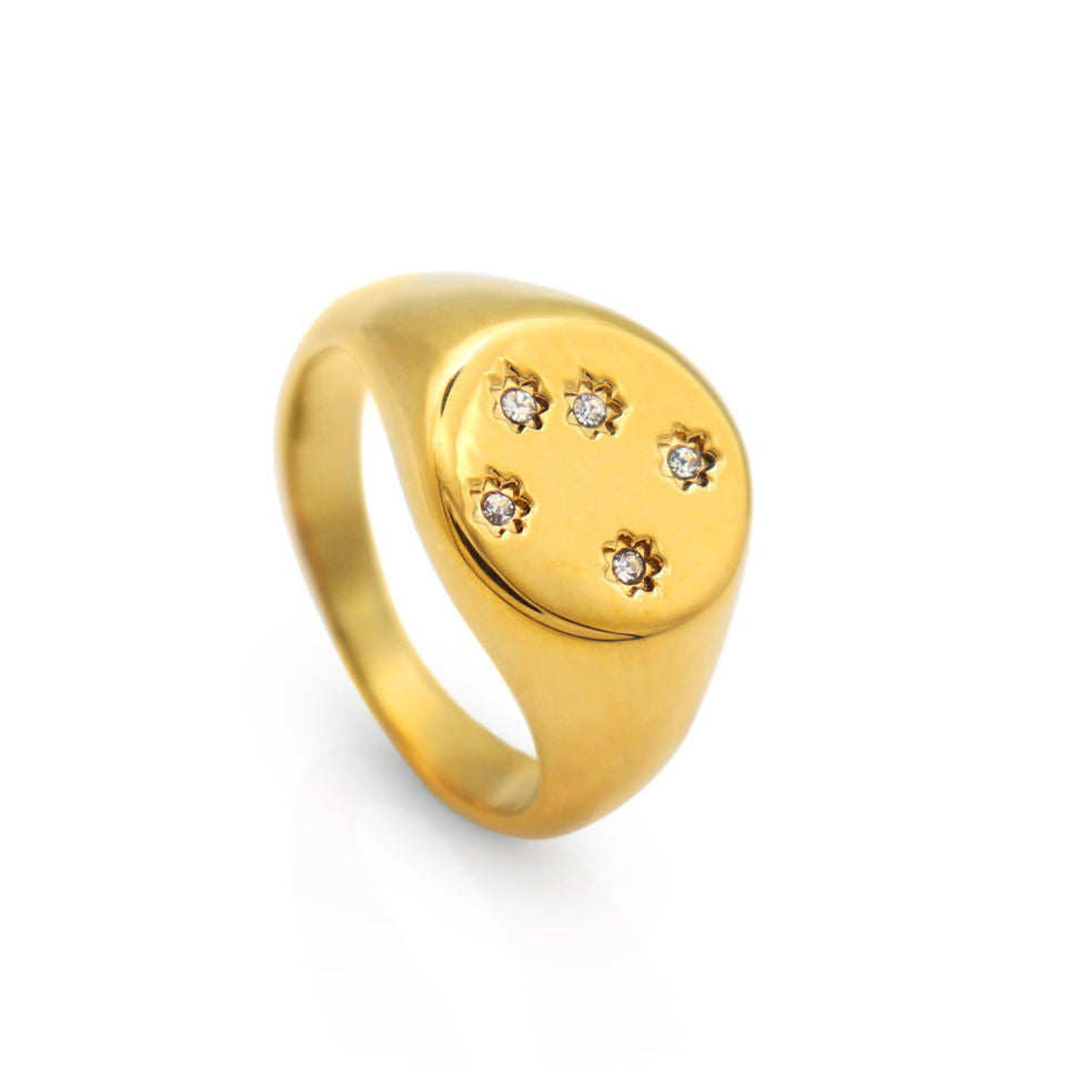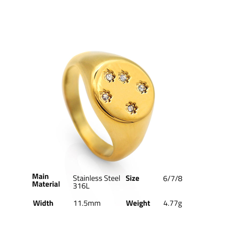 316Lサージカルステンレス リング シグネット スター 星 ジルコニア【NY01465】