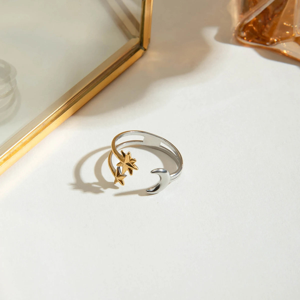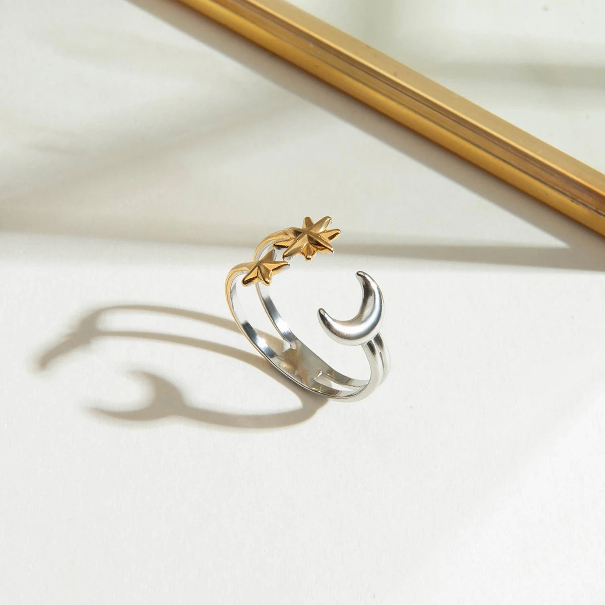 ステンレス304 ニッケルフリー 水に濡れても錆びにくい 18Kゴールドメッキ リング スター 星 月 【YJ00175】