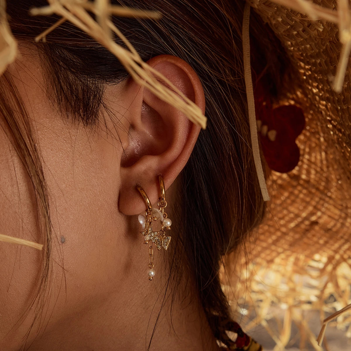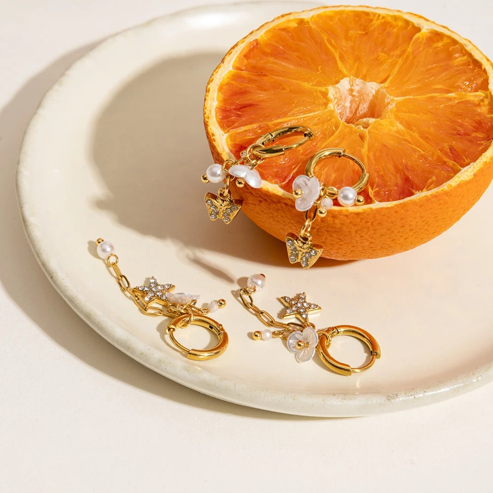 ステンレス304 ニッケルフリー 水に濡れても錆びにくい 18Kゴールドメッキ タッセル ピアス スター 星 蝶々 バタフライ パール 【YJ00413】