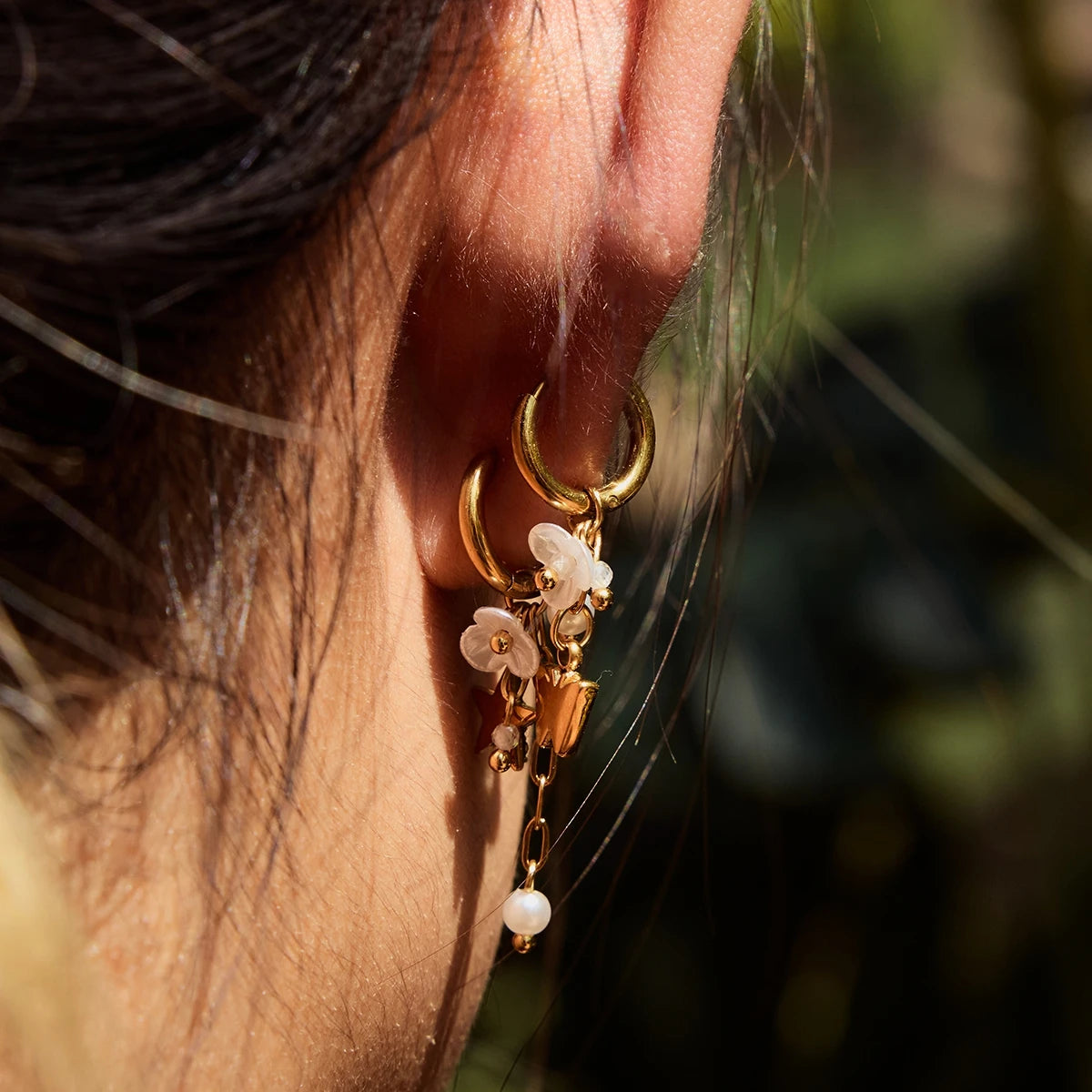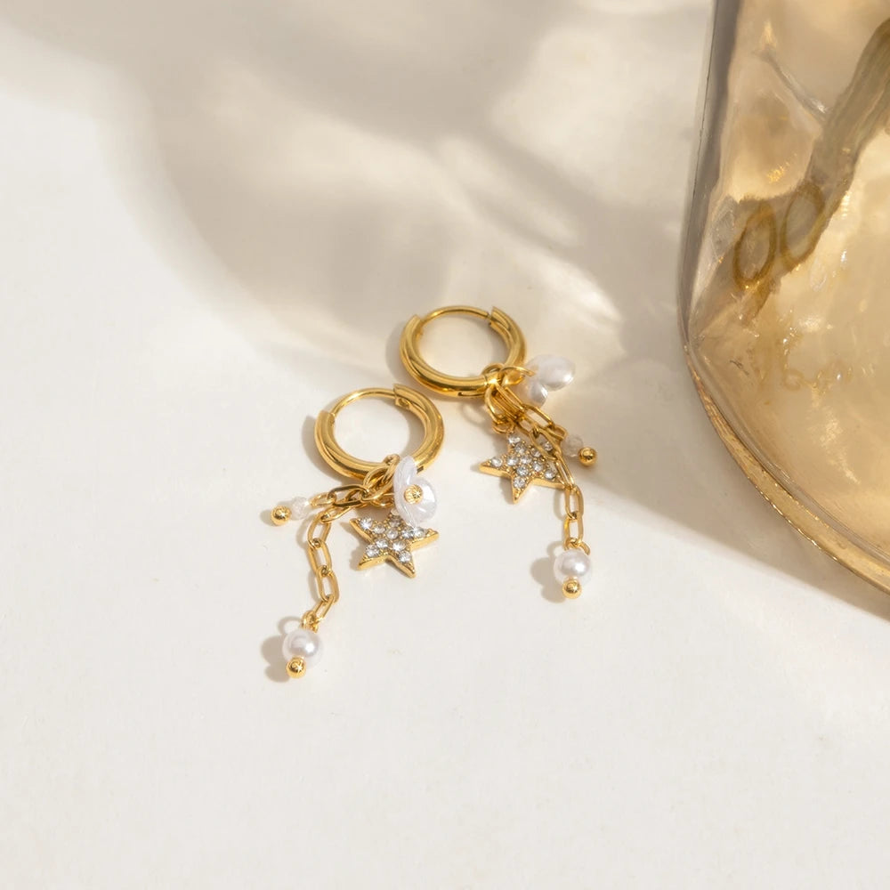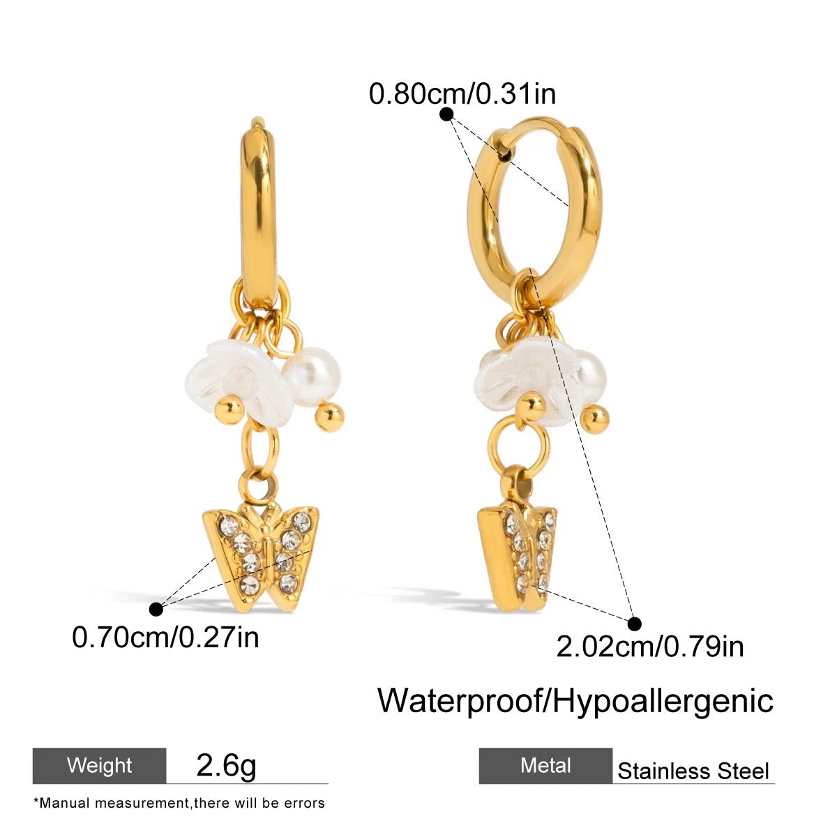 ステンレス304 ニッケルフリー 水に濡れても錆びにくい 18Kゴールドメッキ タッセル ピアス スター 星 蝶々 バタフライ 【YJ00683】