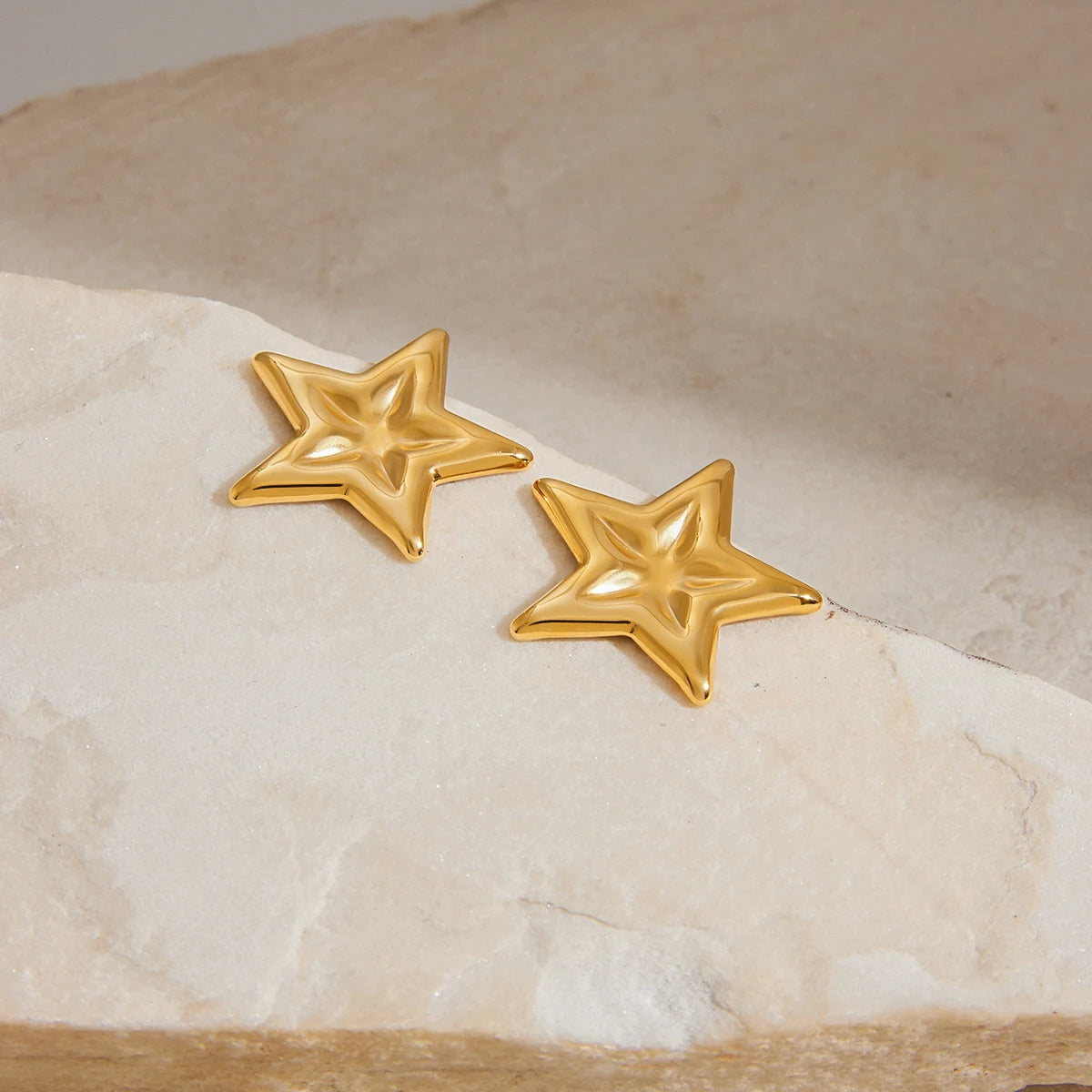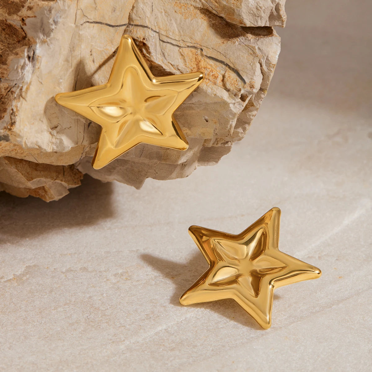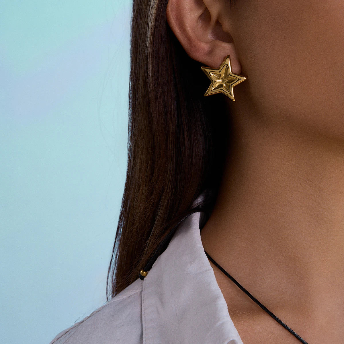 ステンレス304 低ニッケル 水に濡れても錆びにくい 18Kゴールドメッキ ピアス スター 星 【YJ01259】