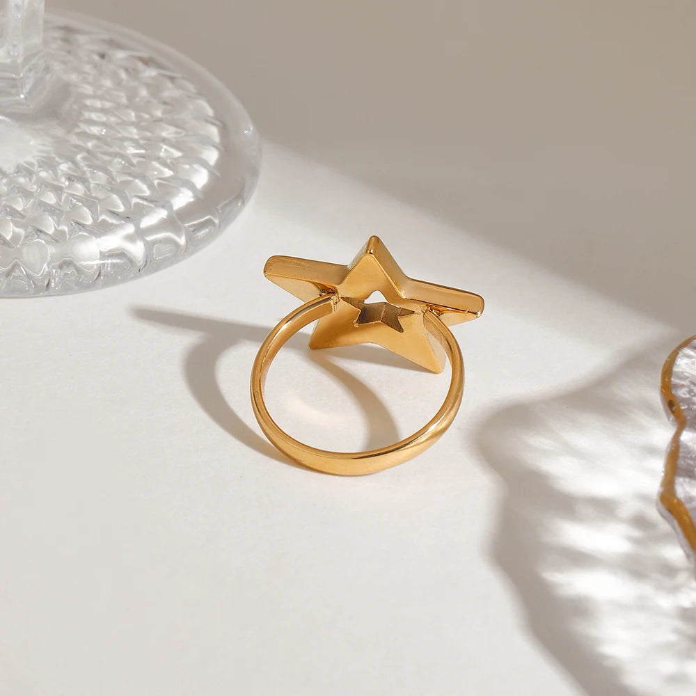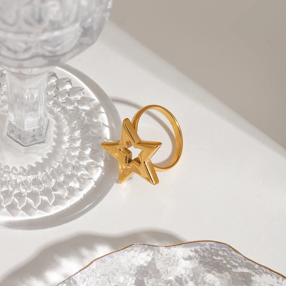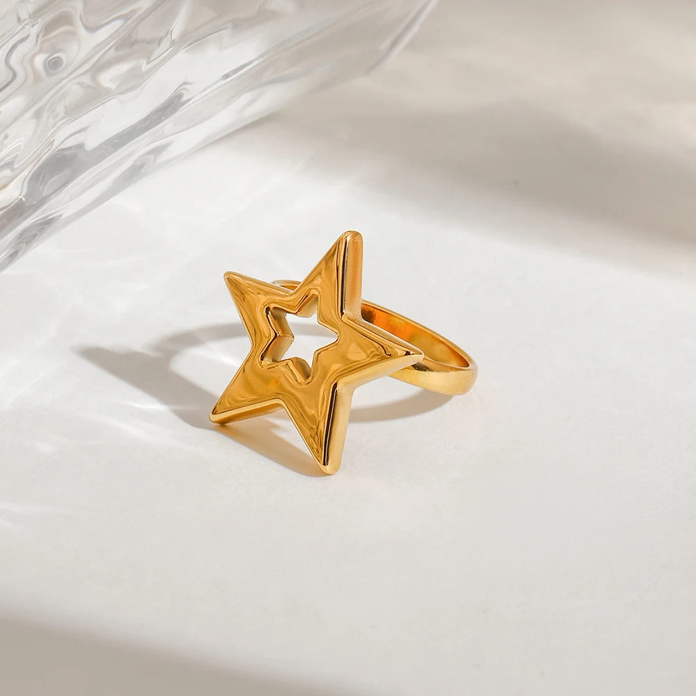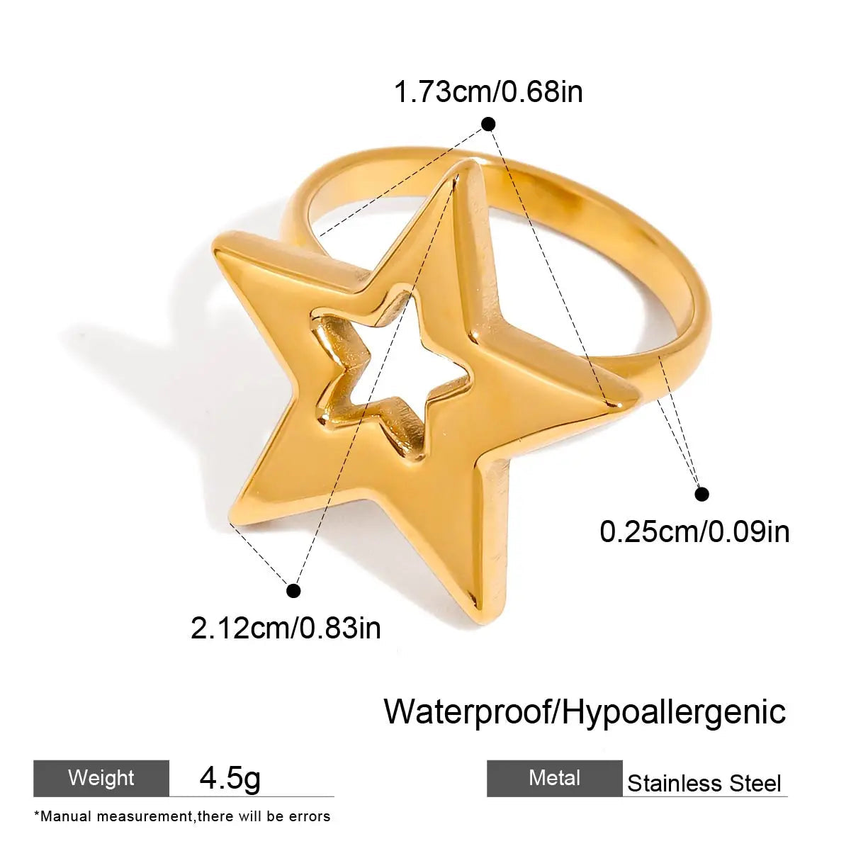 ステンレス304 低ニッケル 水に濡れても錆びにくい 18Kゴールドメッキ リング スター 星 【YJ01342】