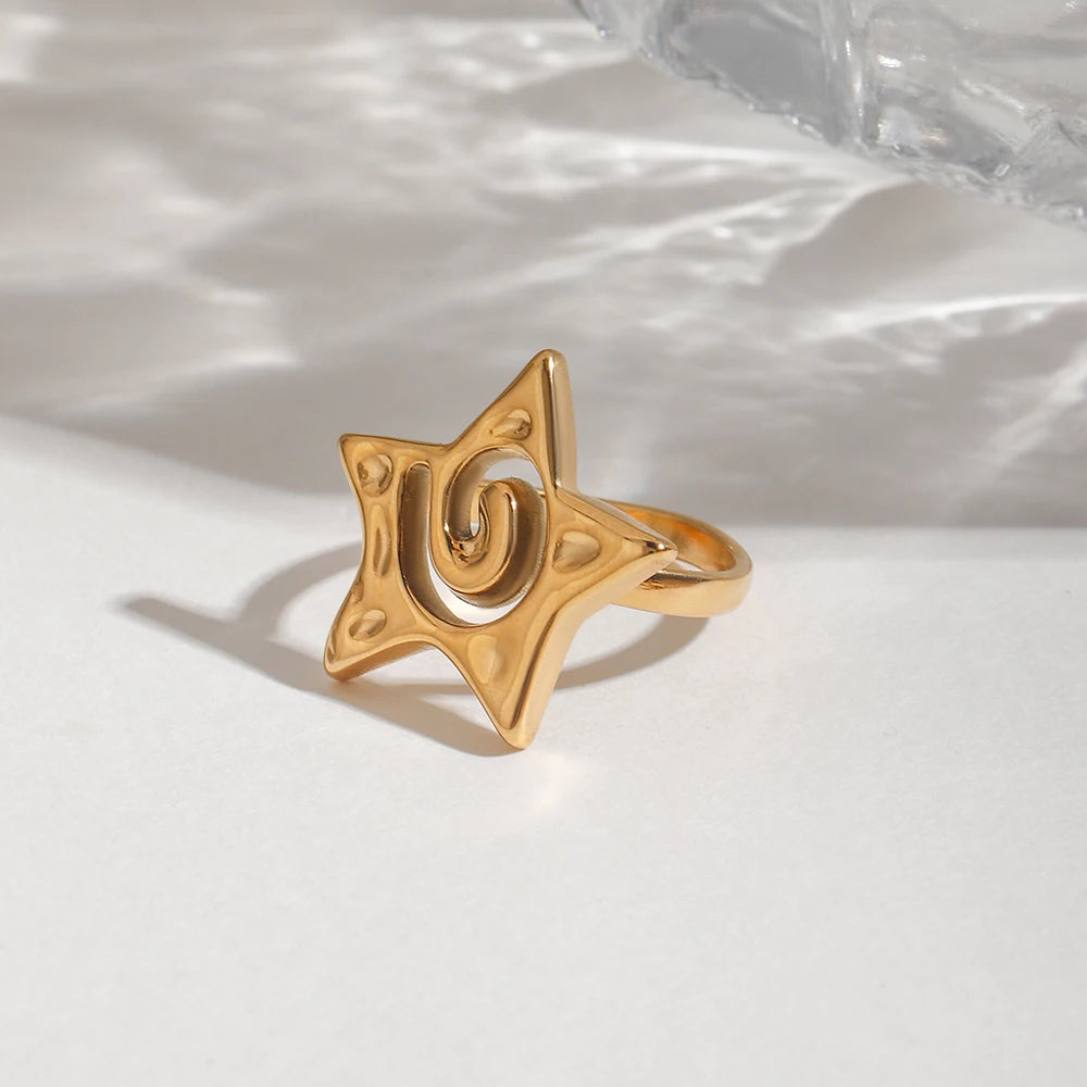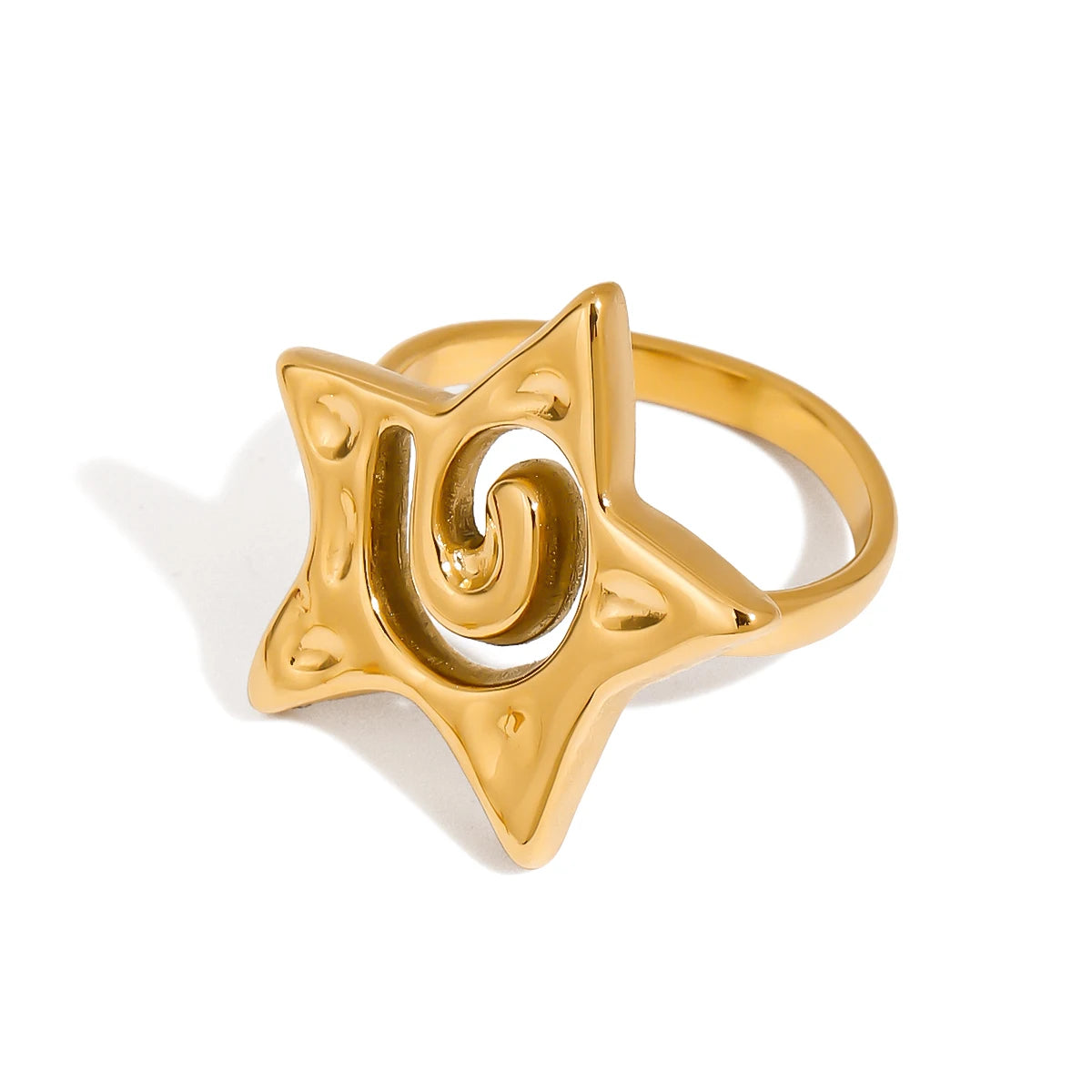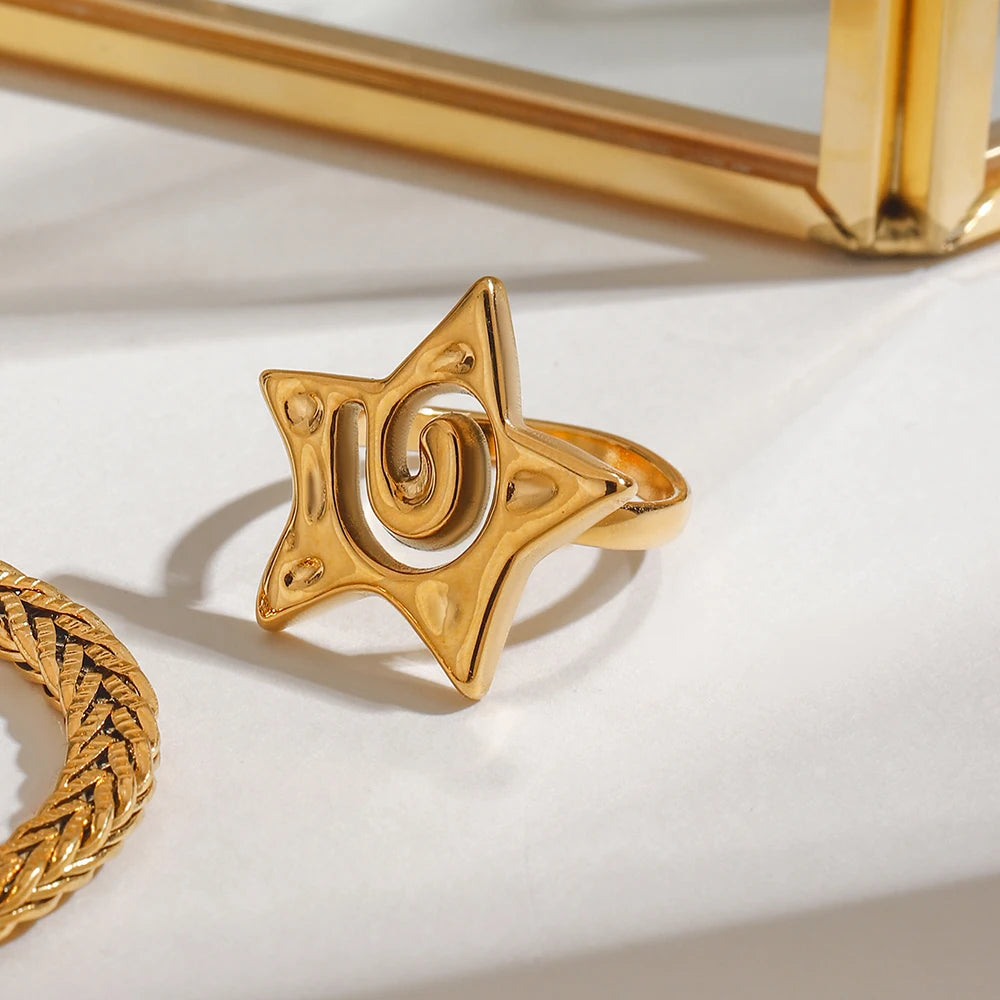 ステンレス304 低ニッケル 水に濡れても錆びにくい 18Kゴールドメッキ リング スパイラル スター 星 【YJ01496】