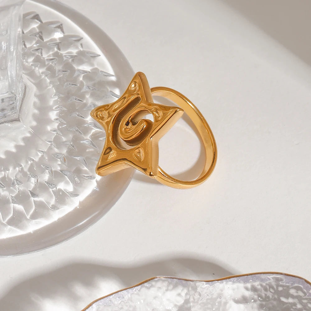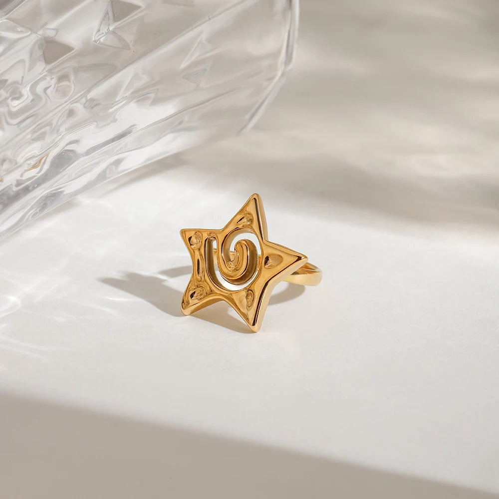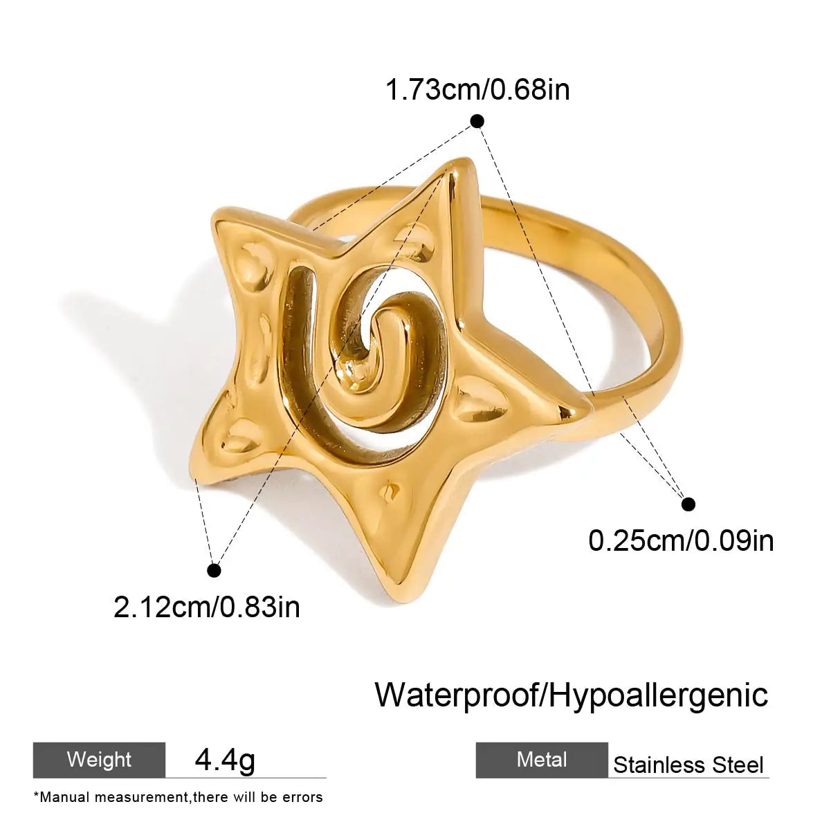 ステンレス304 低ニッケル 水に濡れても錆びにくい 18Kゴールドメッキ リング スパイラル スター 星 【YJ01496】