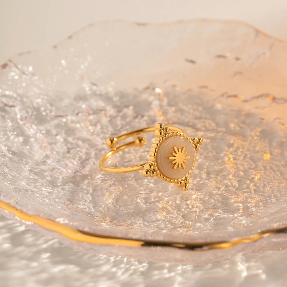 ステンレス304 低ニッケル 水に濡れても錆びにくい 18Kゴールドメッキ リング スター 星 【YJ01738】