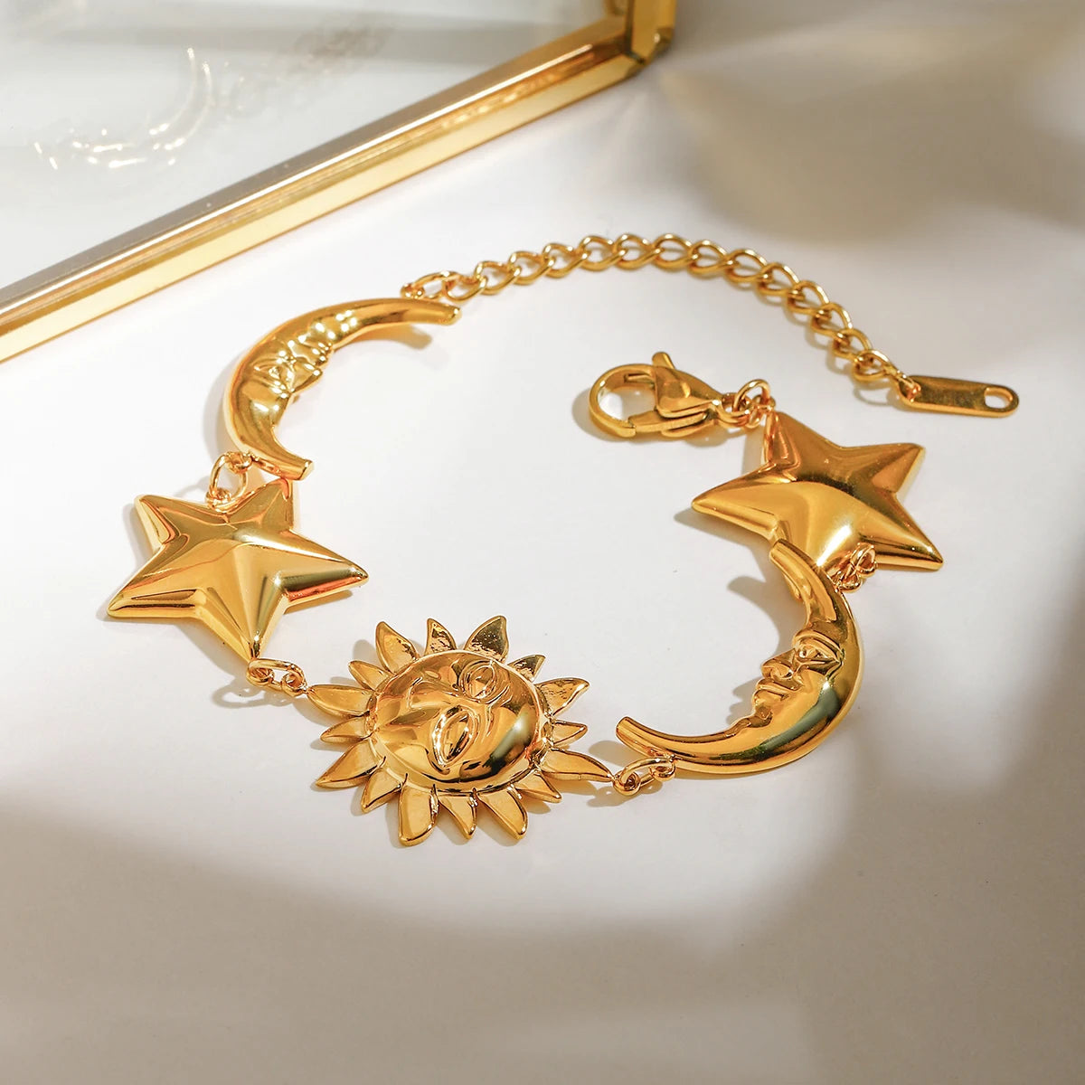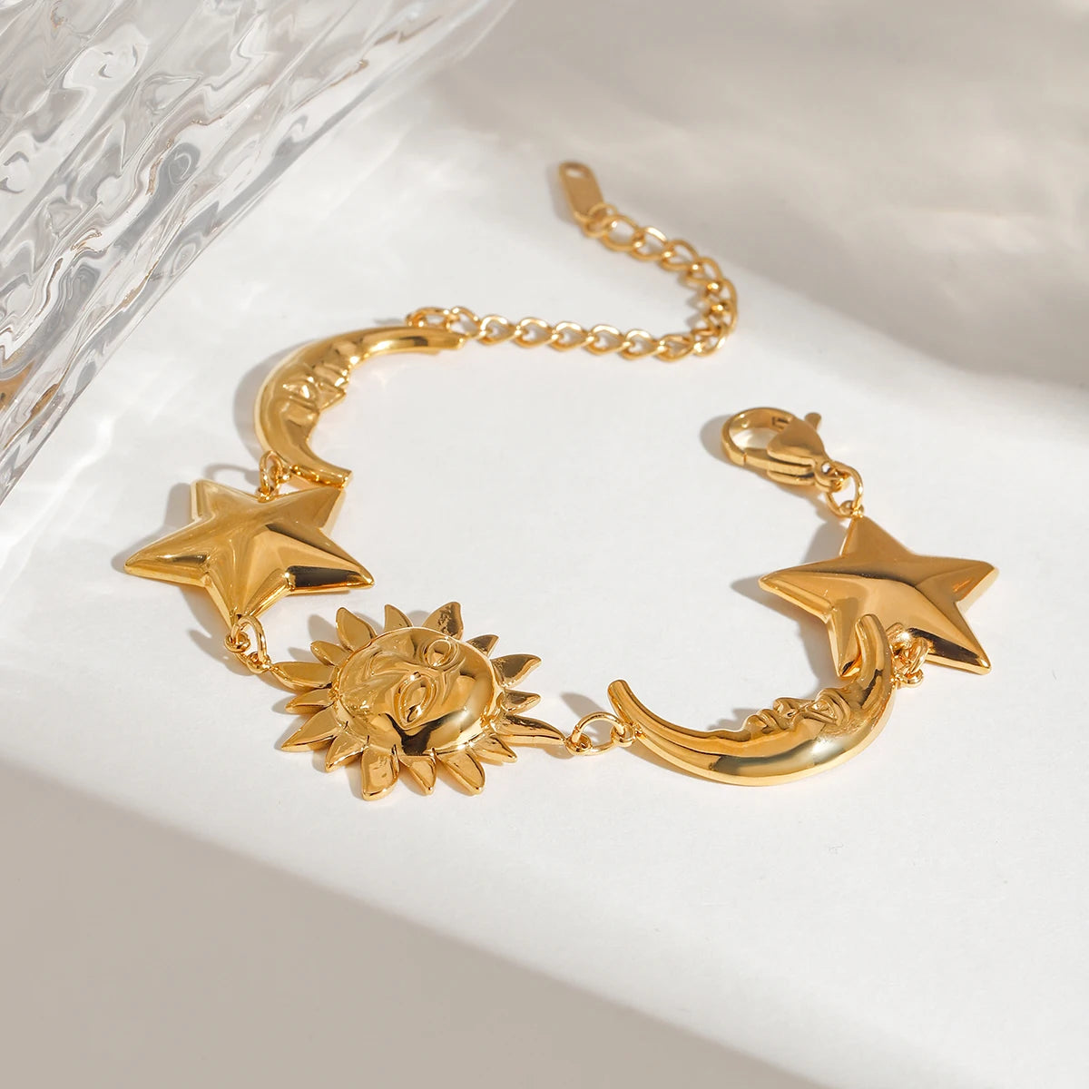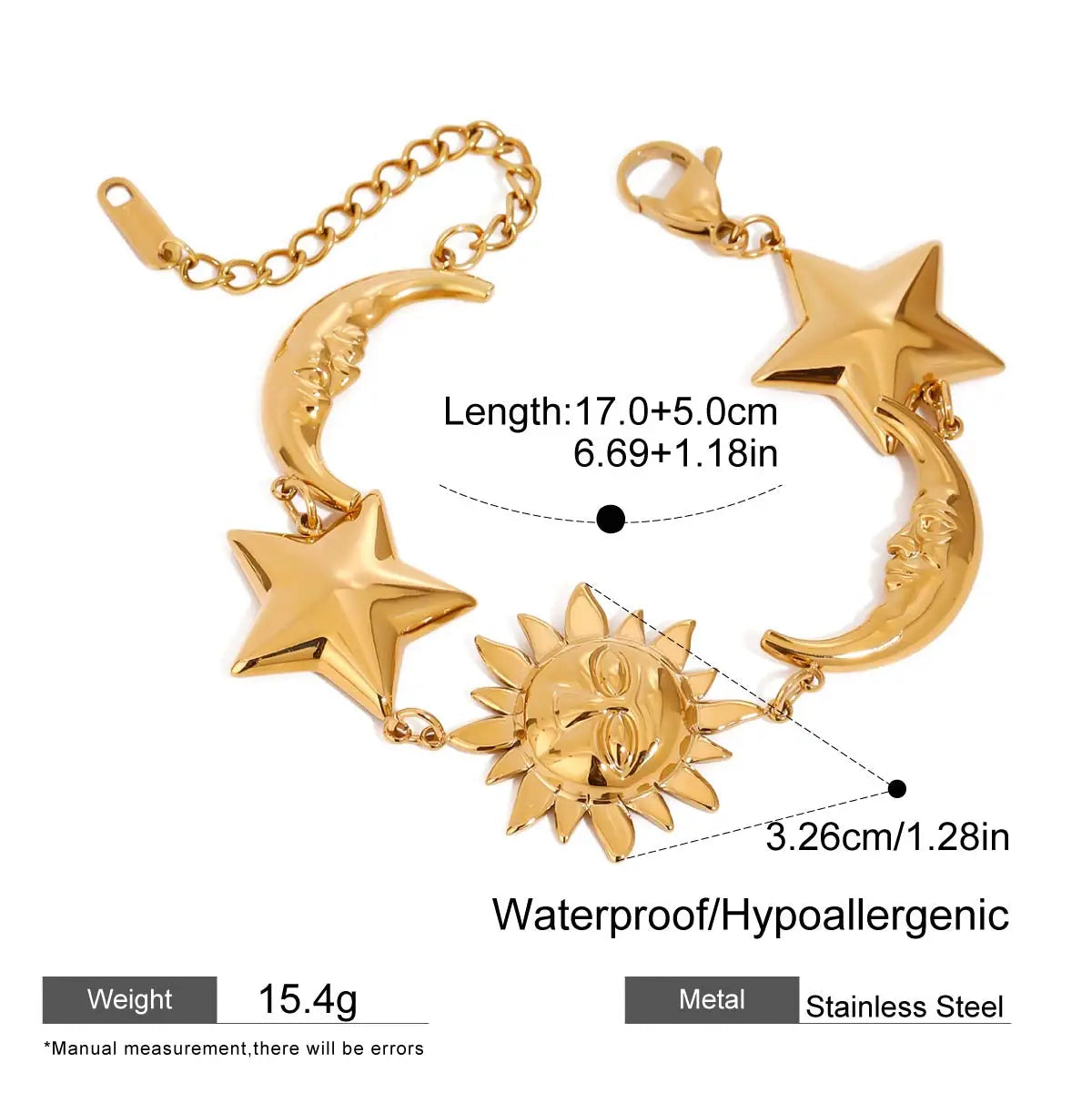 ステンレス304 低ニッケル 水に濡れても錆びにくい 18Kゴールドメッキ ブレスレット 月 太陽 星 スター 【YJ02592】
