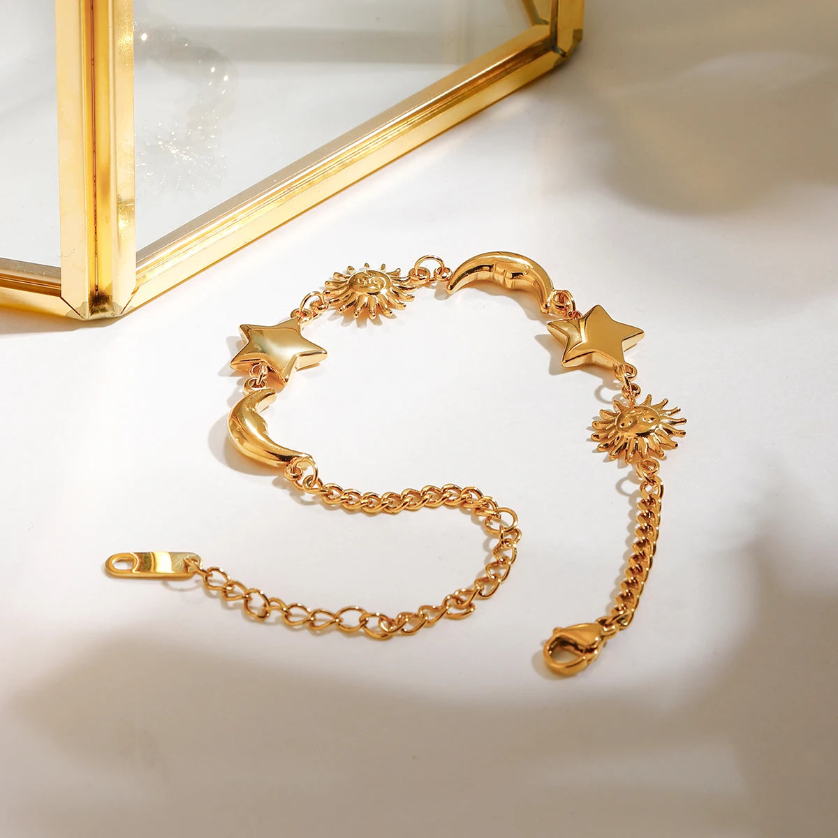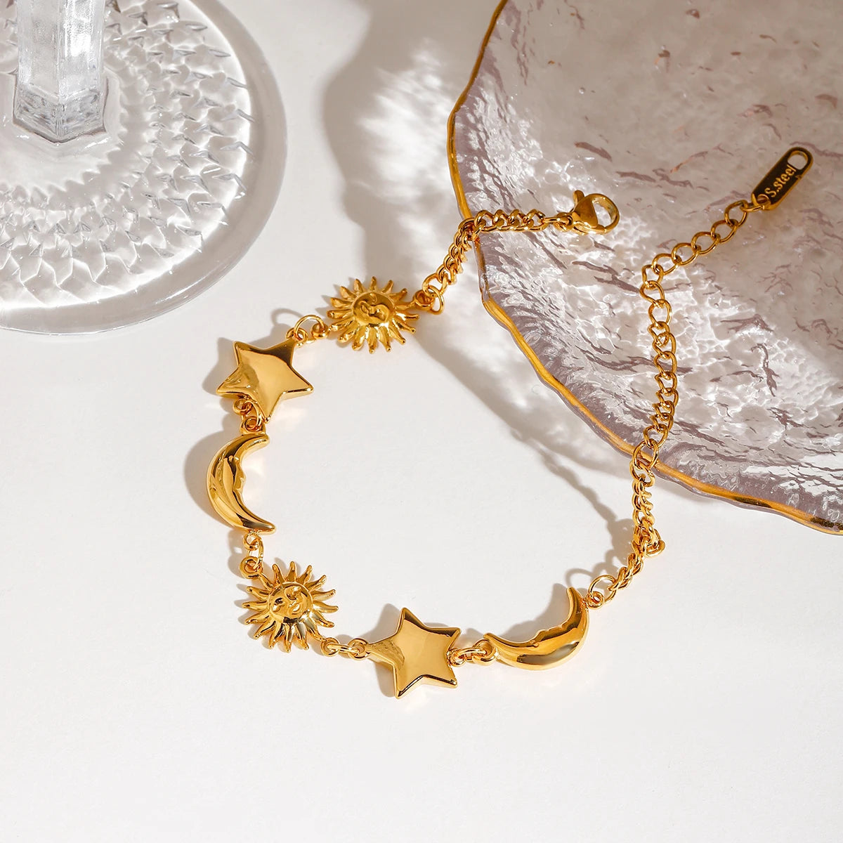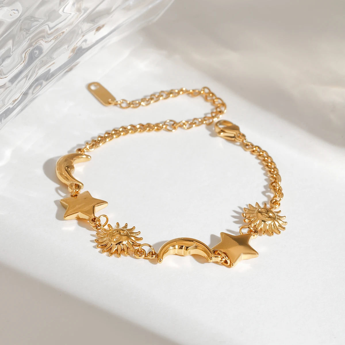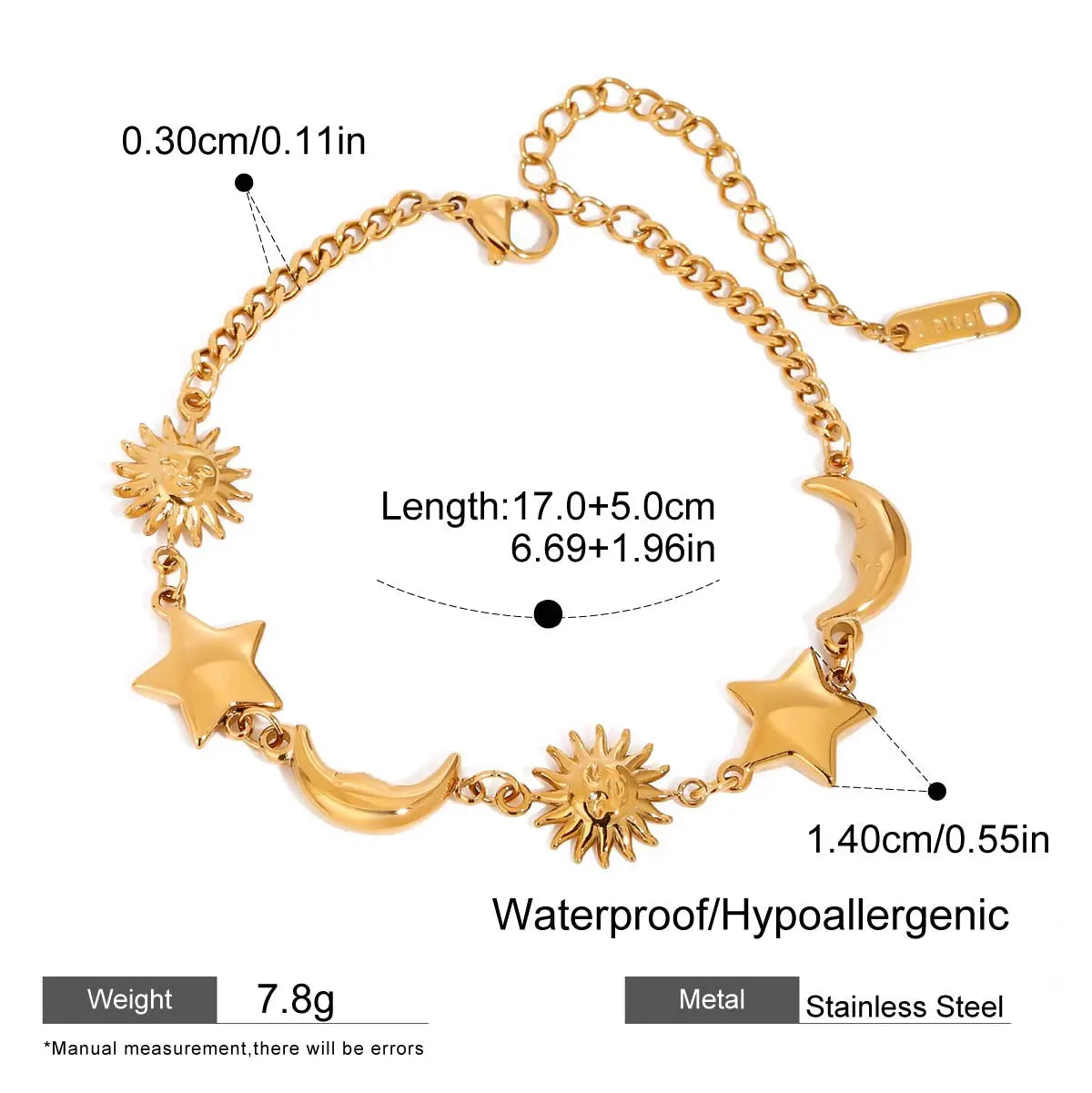 ステンレス304 低ニッケル 水に濡れても錆びにくい 18Kゴールドメッキ ブレスレット チェーン スター 星 太陽 月 【YJ02647】