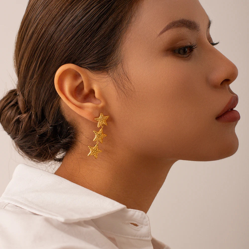 ステンレス304 低ニッケル 水に濡れても錆びにくい 18Kゴールドメッキ ピアス スター 星 【YJ03002】