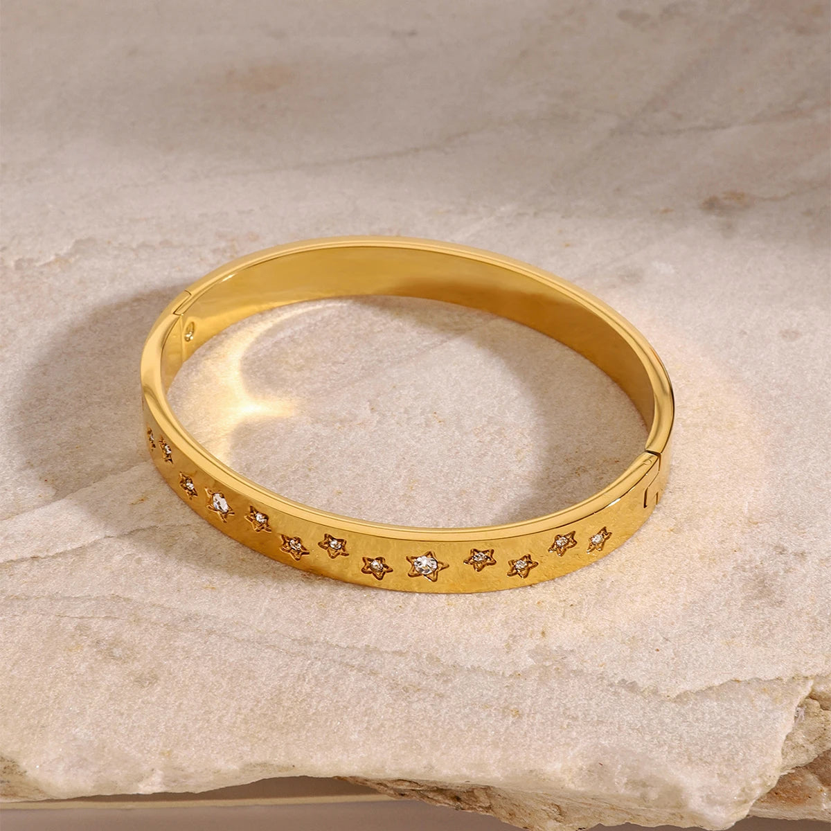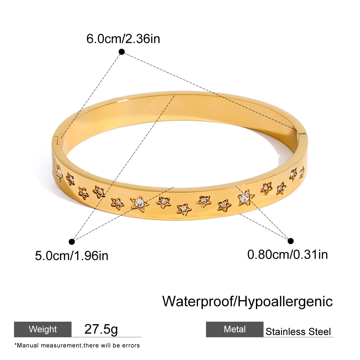 ステンレス304 低ニッケル 水に濡れても錆びにくい 18Kゴールドメッキ ブレスレット スター 星 ジルコニア【YJ03018】