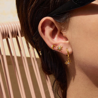 ステンレス304 ニッケルフリー 水に濡れても錆びにくい 18Kゴールドメッキ フープ ピアス スター 星 月 ジルコニア 3点セット【YJ00041】