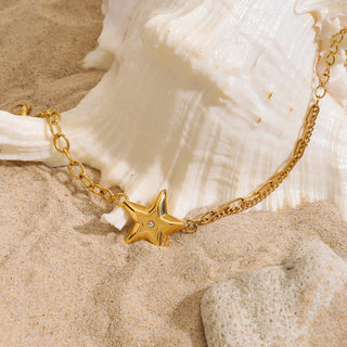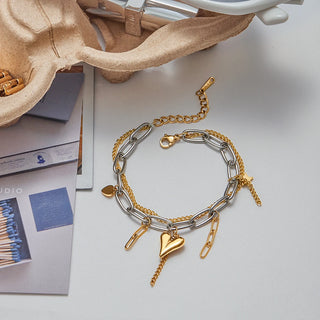ステンレス304 ニッケルフリー 水に濡れても錆びにくい 18Kゴールドメッキ チャーム ブレスレット ハート スター 星 【YJ00196】