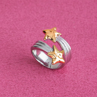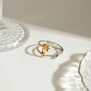 ステンレス304 ニッケルフリー 水に濡れても錆びにくい 18Kゴールドメッキ リング スター 星 月 【YJ00175】