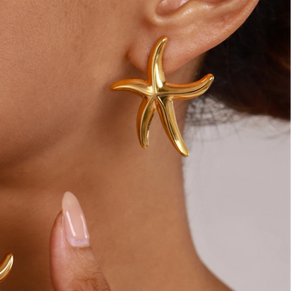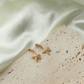 ステンレス304 低ニッケル 水に濡れても錆びにくい 18Kゴールドメッキ ピアス イヤーカフ タッセル ヒトデ 【YJ02455】