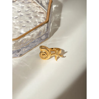 ステンレス304 低ニッケル 水に濡れても錆びにくい 18Kゴールドメッキ リング アンモナイト シェル 貝殻 ヒトデ 魚 【YJ03763】