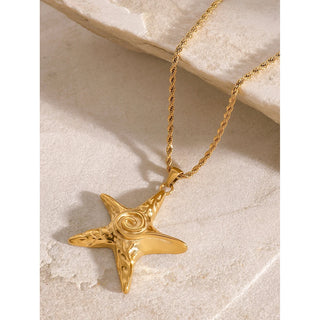 ステンレス304 低ニッケル 水に濡れても錆びにくい 18Kゴールドメッキ ネックレス ヒトデ 【YJ02216】