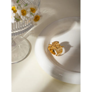 ステンレス304 低ニッケル 水に濡れても錆びにくい 18Kゴールドメッキ リング ヒトデ 【YJ01998】