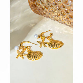 ステンレス304 低ニッケル 水に濡れても錆びにくい 18Kゴールドメッキ ピアス フープ シェル 貝殻 ヒトデ パール 3点セット【YJ02697】