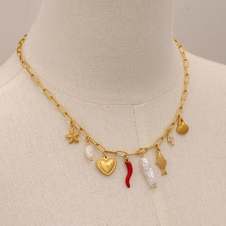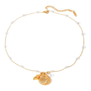 ステンレス304 低ニッケル 水に濡れても錆びにくい 18Kゴールドメッキ ネックレス チャーム シェル 貝殻 ヒトデ パール 【YJ02071】