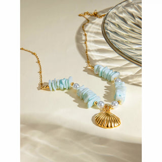 ステンレス304 低ニッケル 水に濡れても錆びにくい 18Kゴールドメッキ ネックレス シェル 貝殻 ヒトデ パール 【YJ01685】