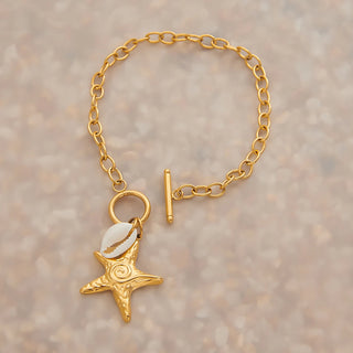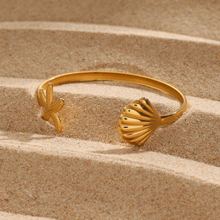 ステンレス304 低ニッケル 水に濡れても錆びにくい 18Kゴールドメッキ ブレスレット シェル 貝殻 ヒトデ 【YJ01573】