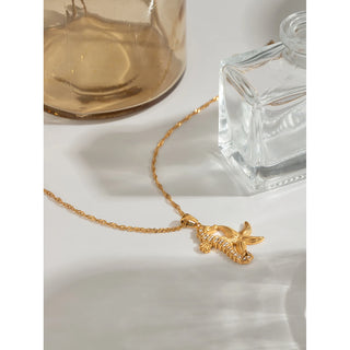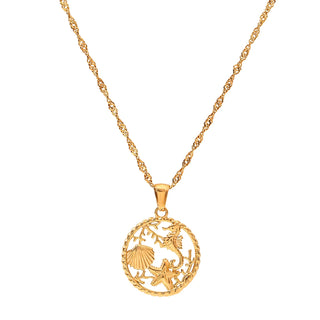 ステンレス304 低ニッケル 水に濡れても錆びにくい 18Kゴールドメッキ ネックレス シェル 貝殻 ヒトデ【YJ02089】