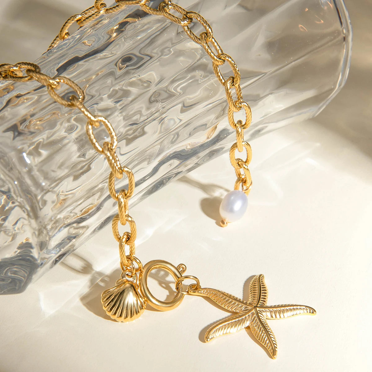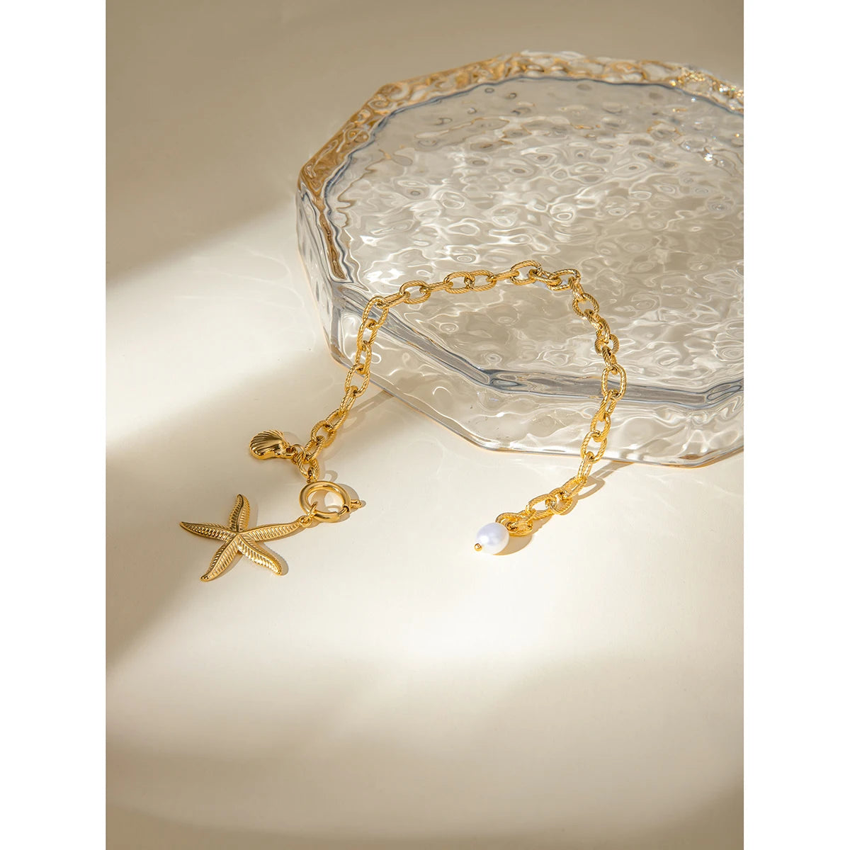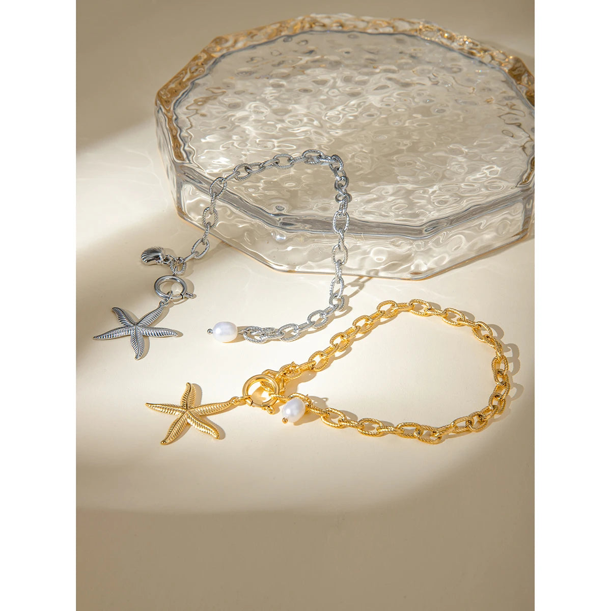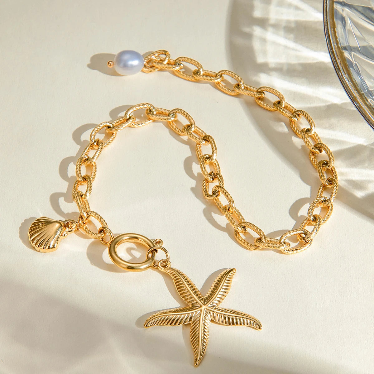 ステンレス304 ニッケルフリー 水に濡れても錆びにくい 18Kゴールドメッキ チェーン ブレスレット ヒトデ 【YJ00572】