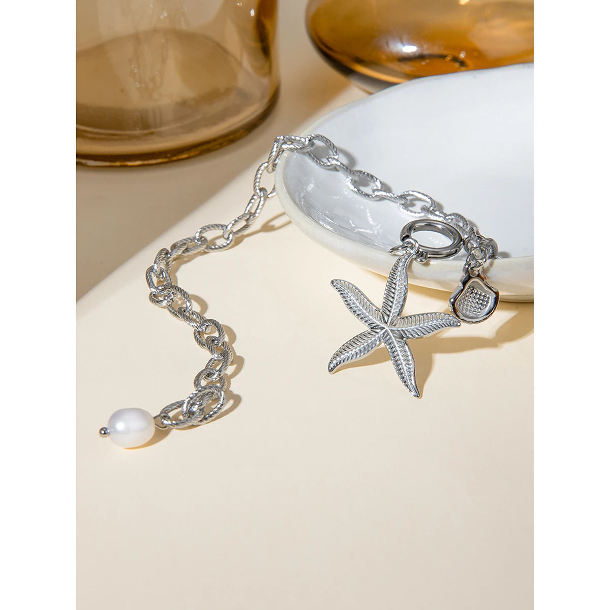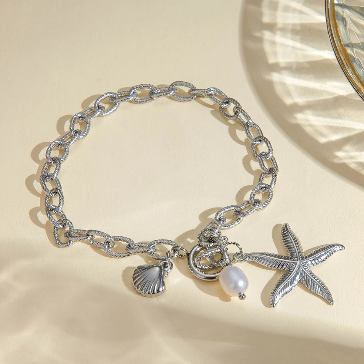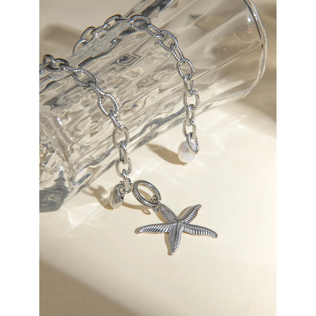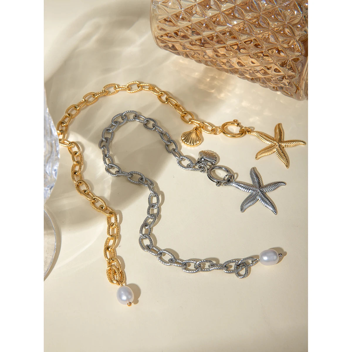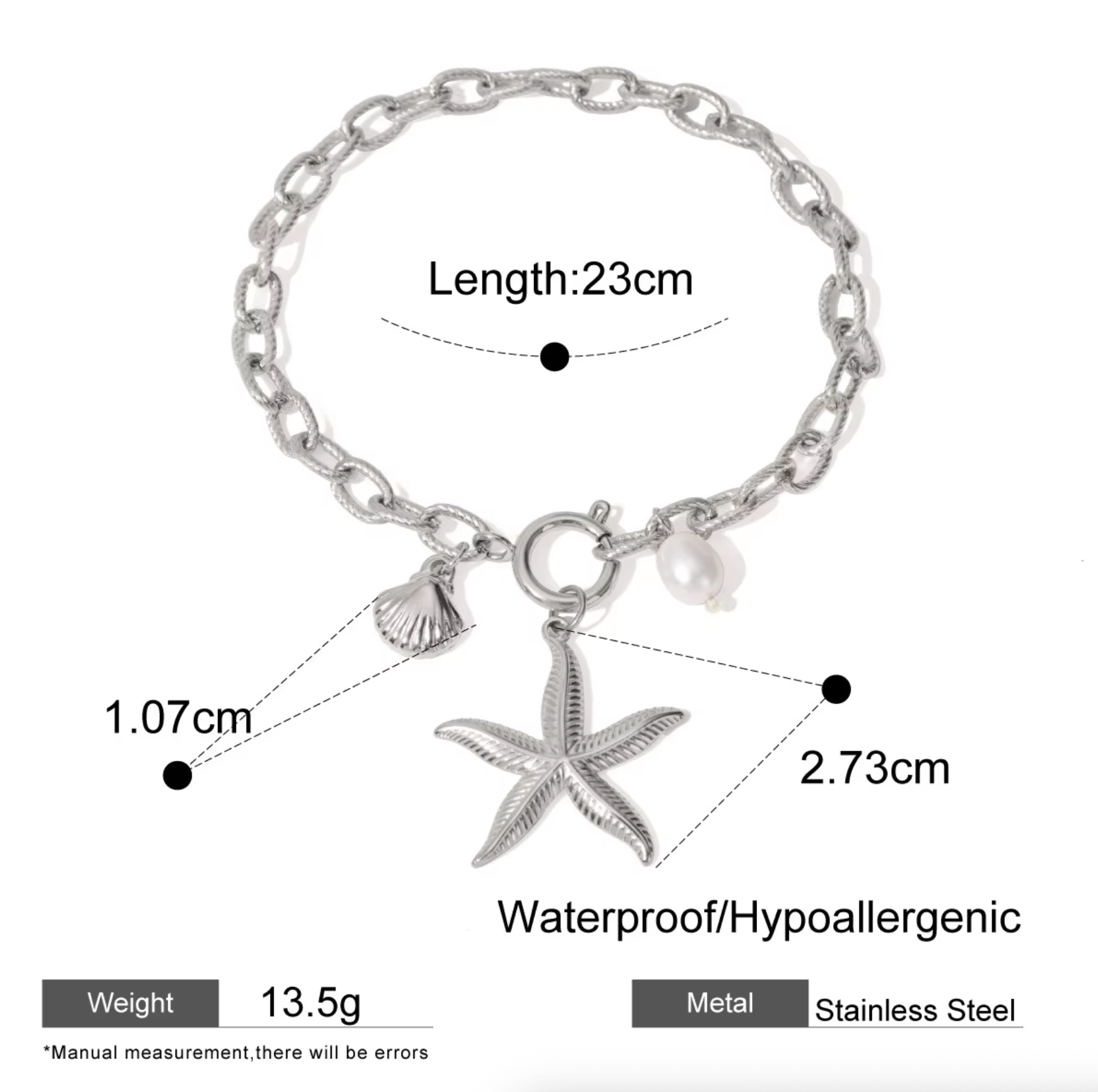 ステンレス304 ニッケルフリー 水に濡れても錆びにくい 18Kゴールドメッキ チェーン ブレスレット ヒトデ 【YJ00572】