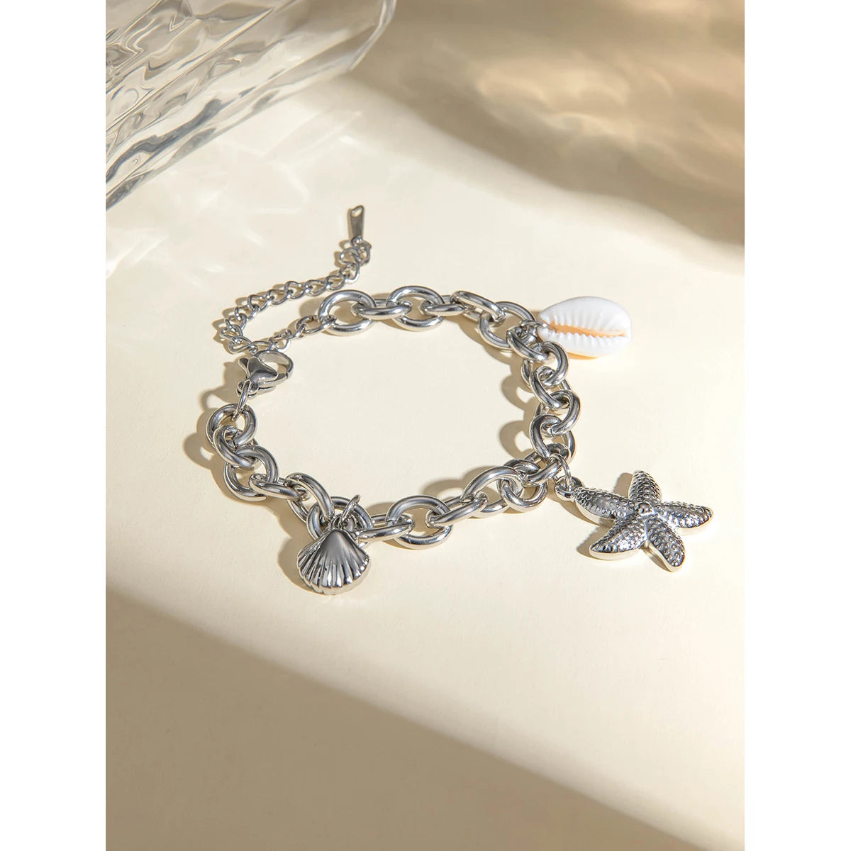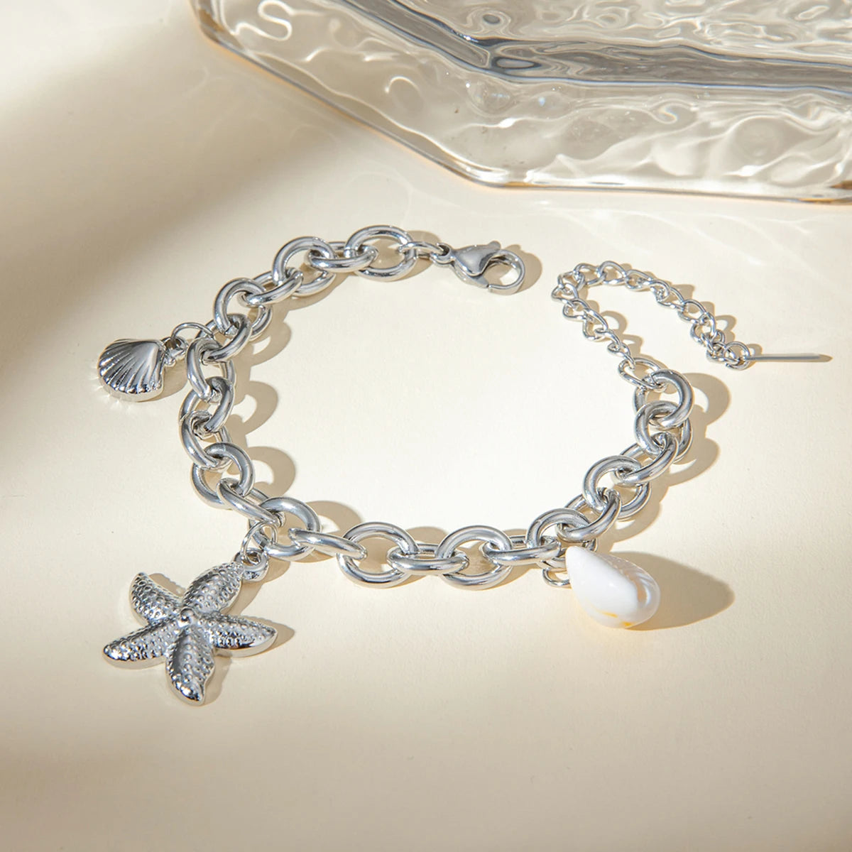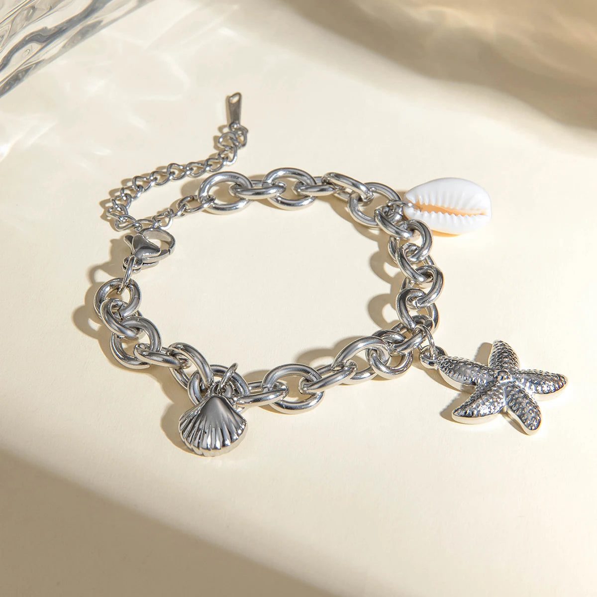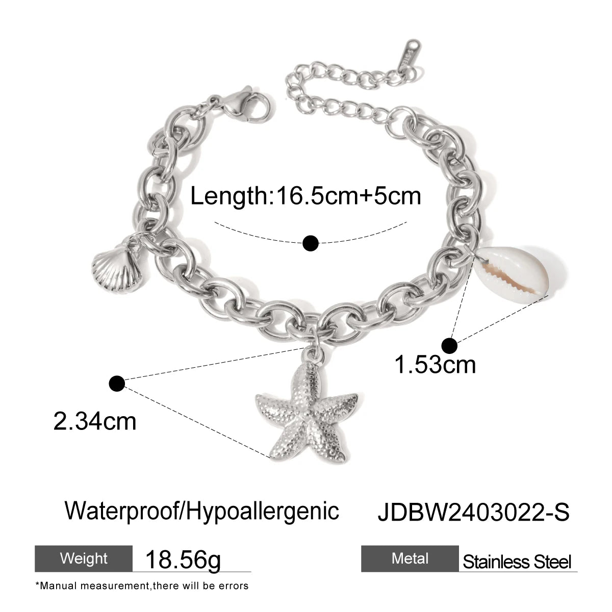 ステンレス304 ニッケルフリー 水に濡れても錆びにくい 18Kゴールドメッキ チェーン ブレスレット ヒトデ シェル 貝殻 【YJ00579】