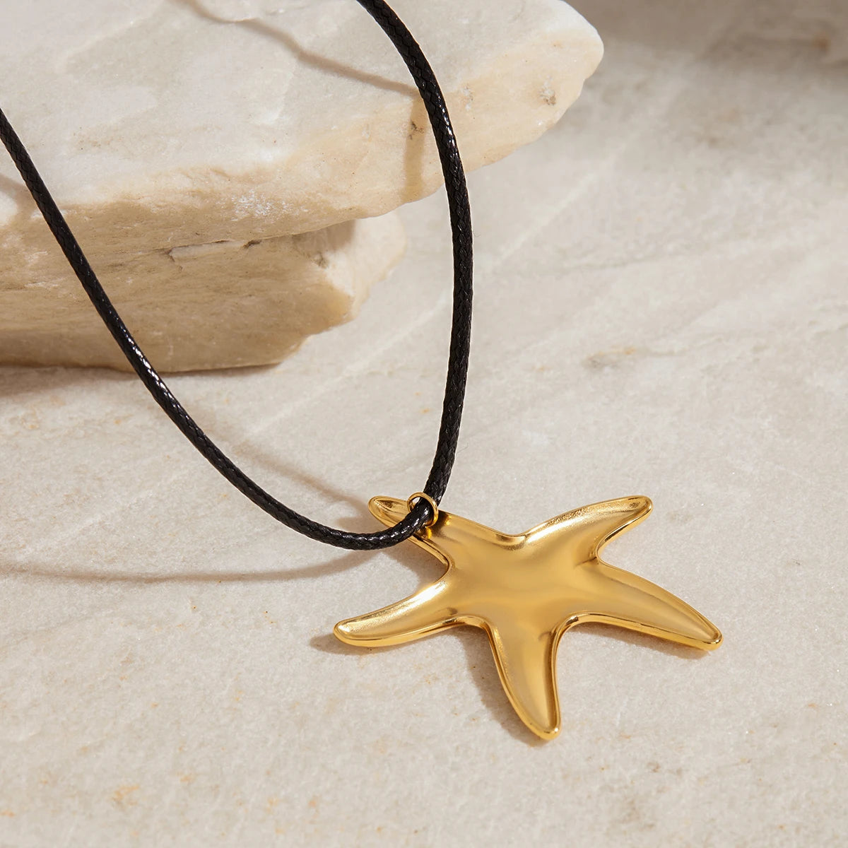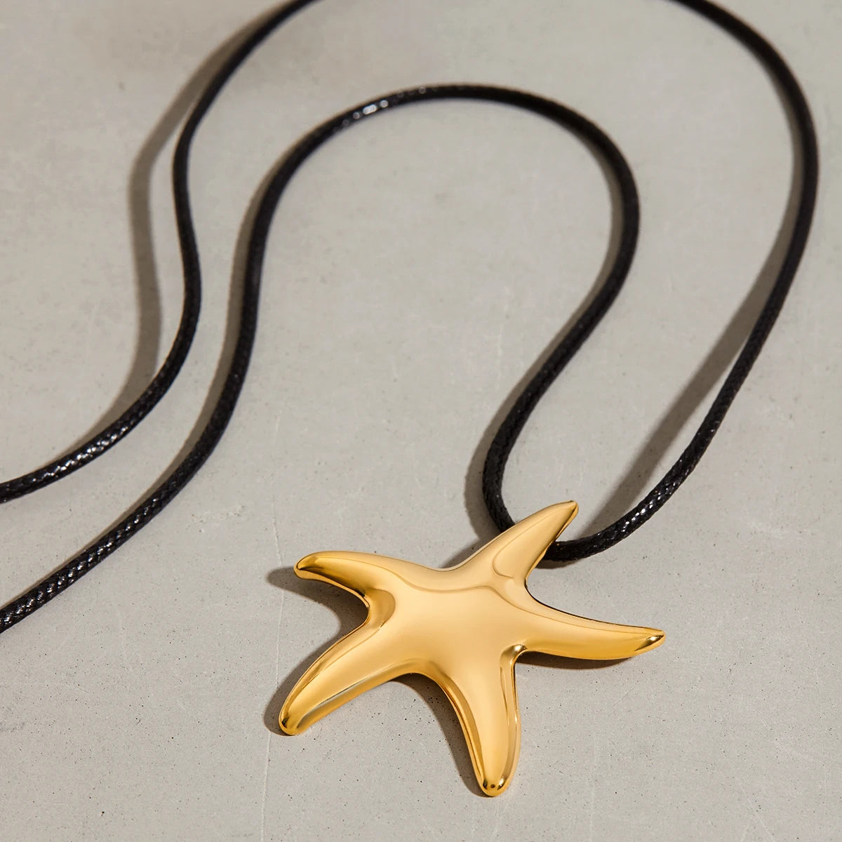 ステンレス304 ニッケルフリー 水に濡れても錆びにくい 18Kゴールドメッキ ネックレス ヒトデ 【YJ00748】