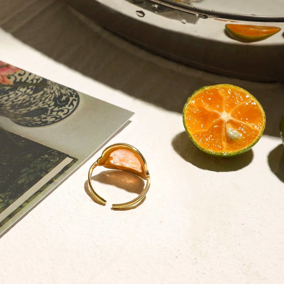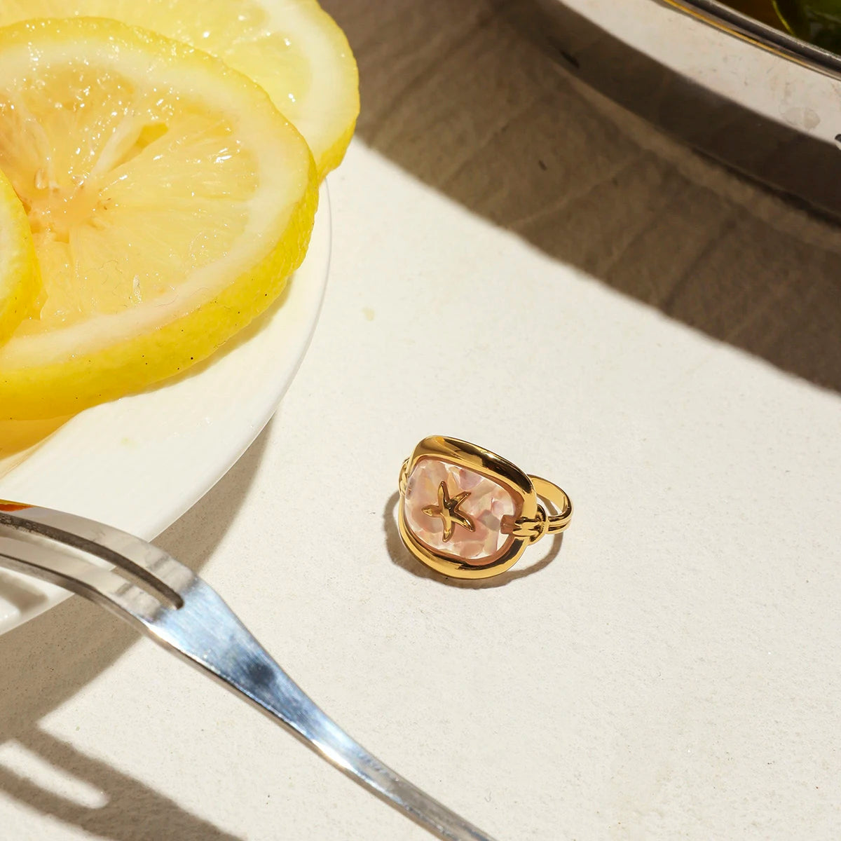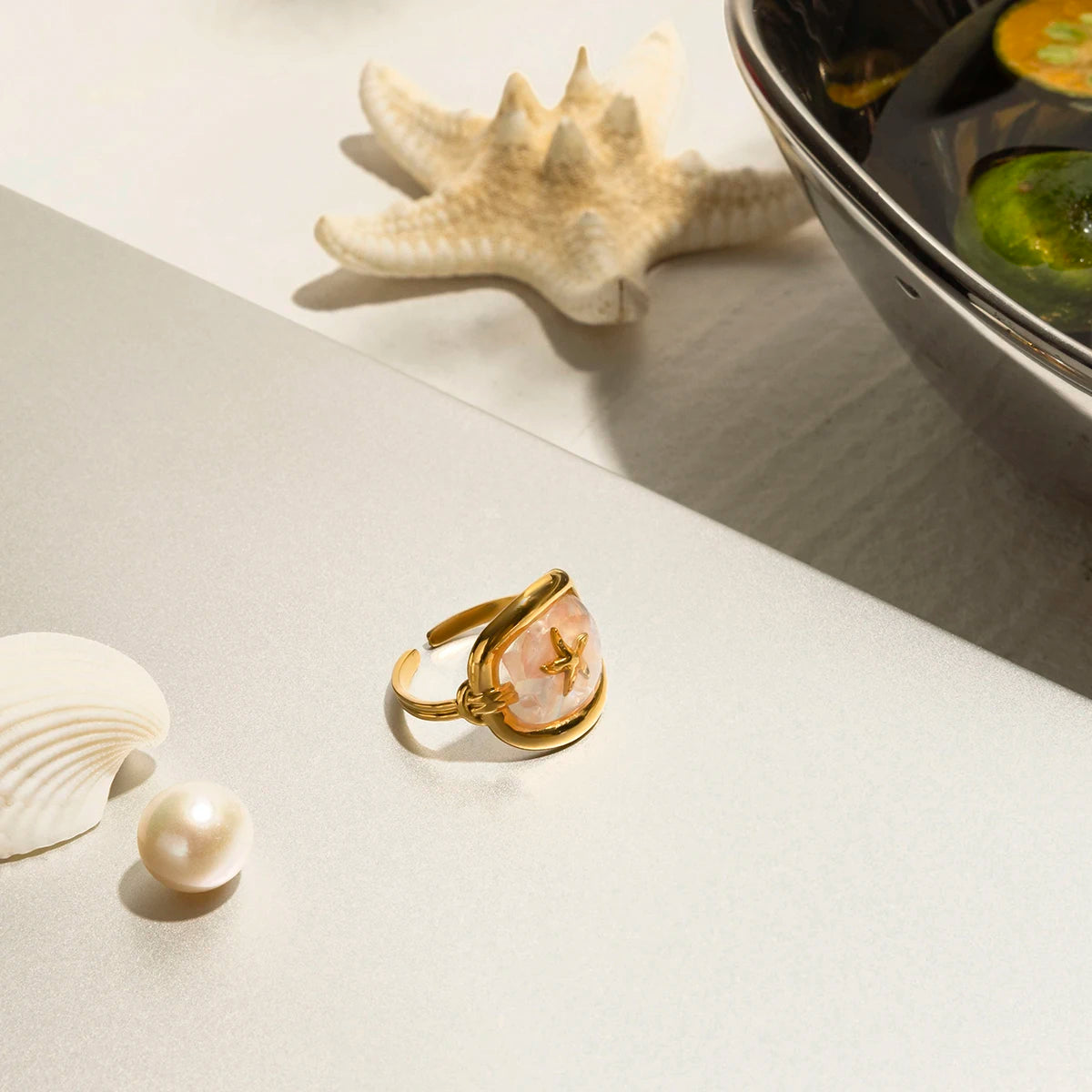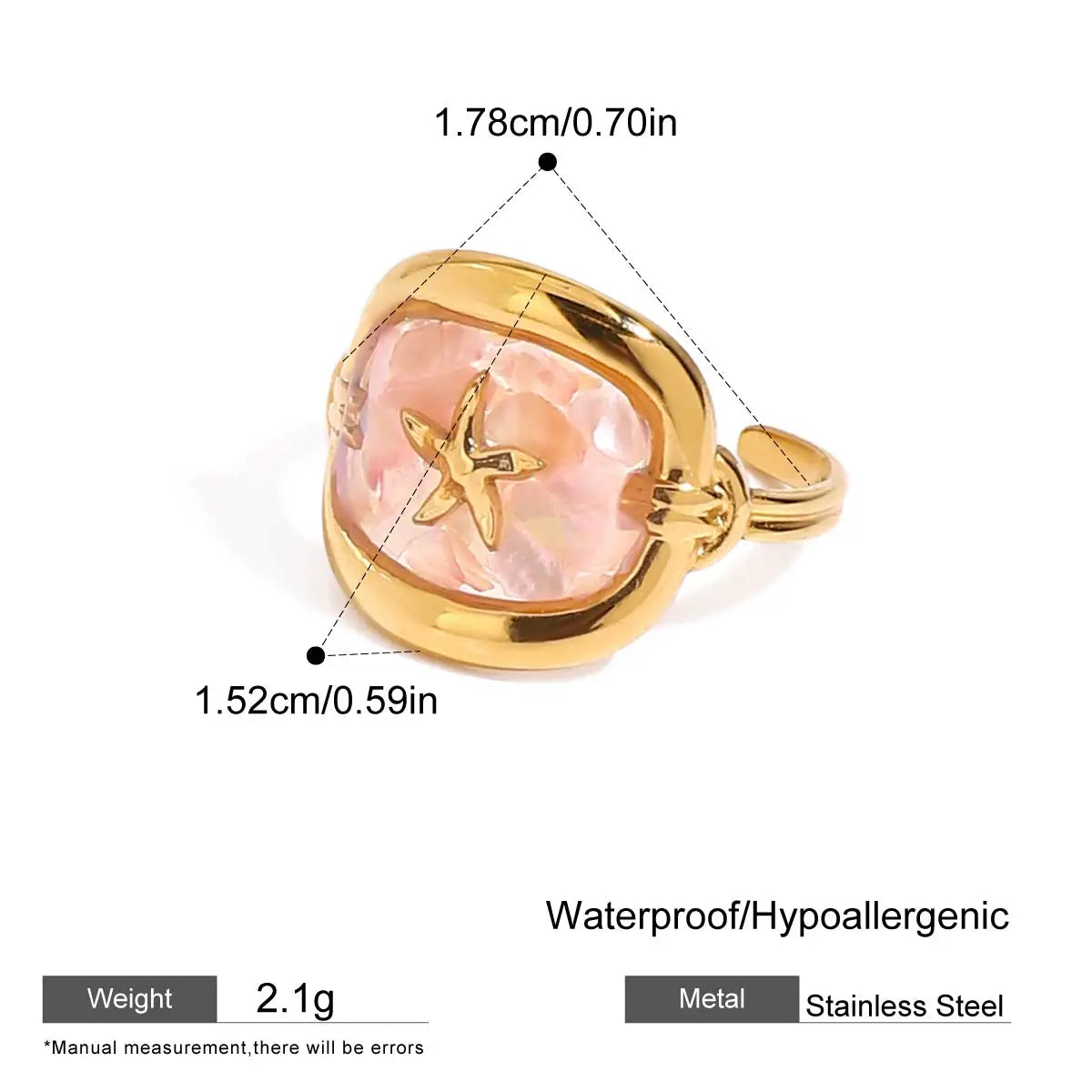 ステンレス304 ニッケルフリー 水に濡れても錆びにくい 18Kゴールドメッキ リング ヒトデ シェル 貝殻 スクエア 【YJ00918】