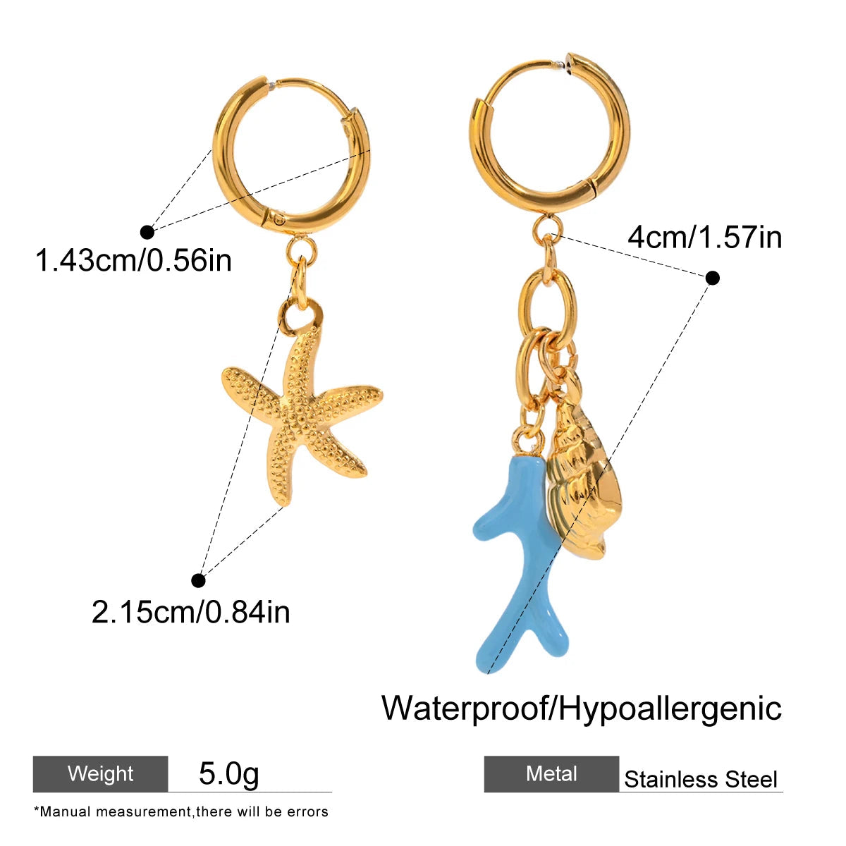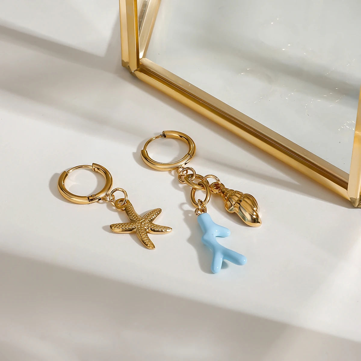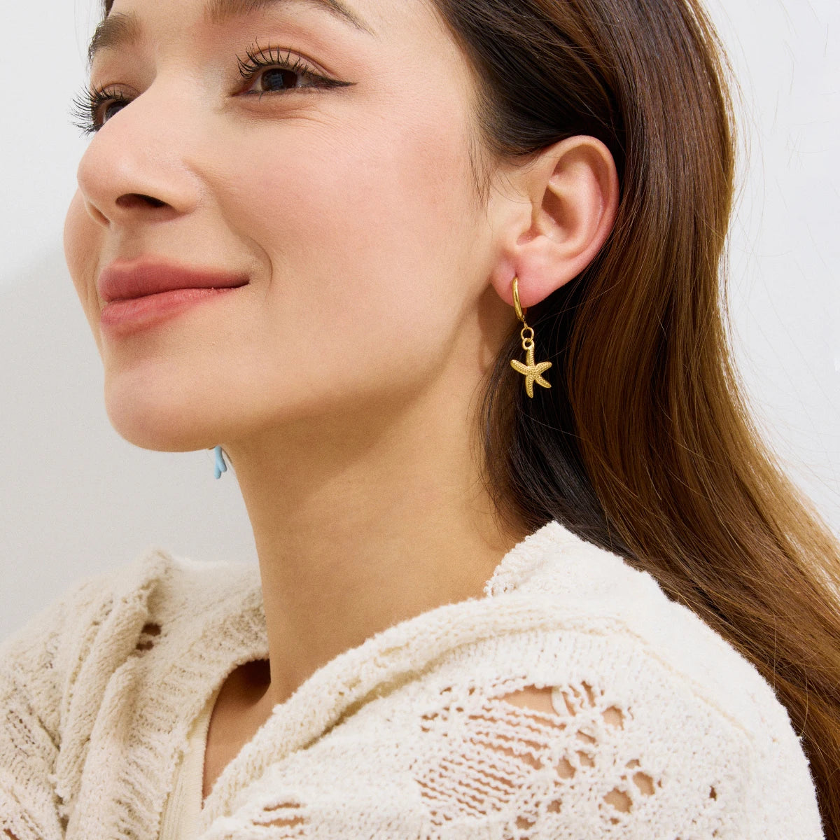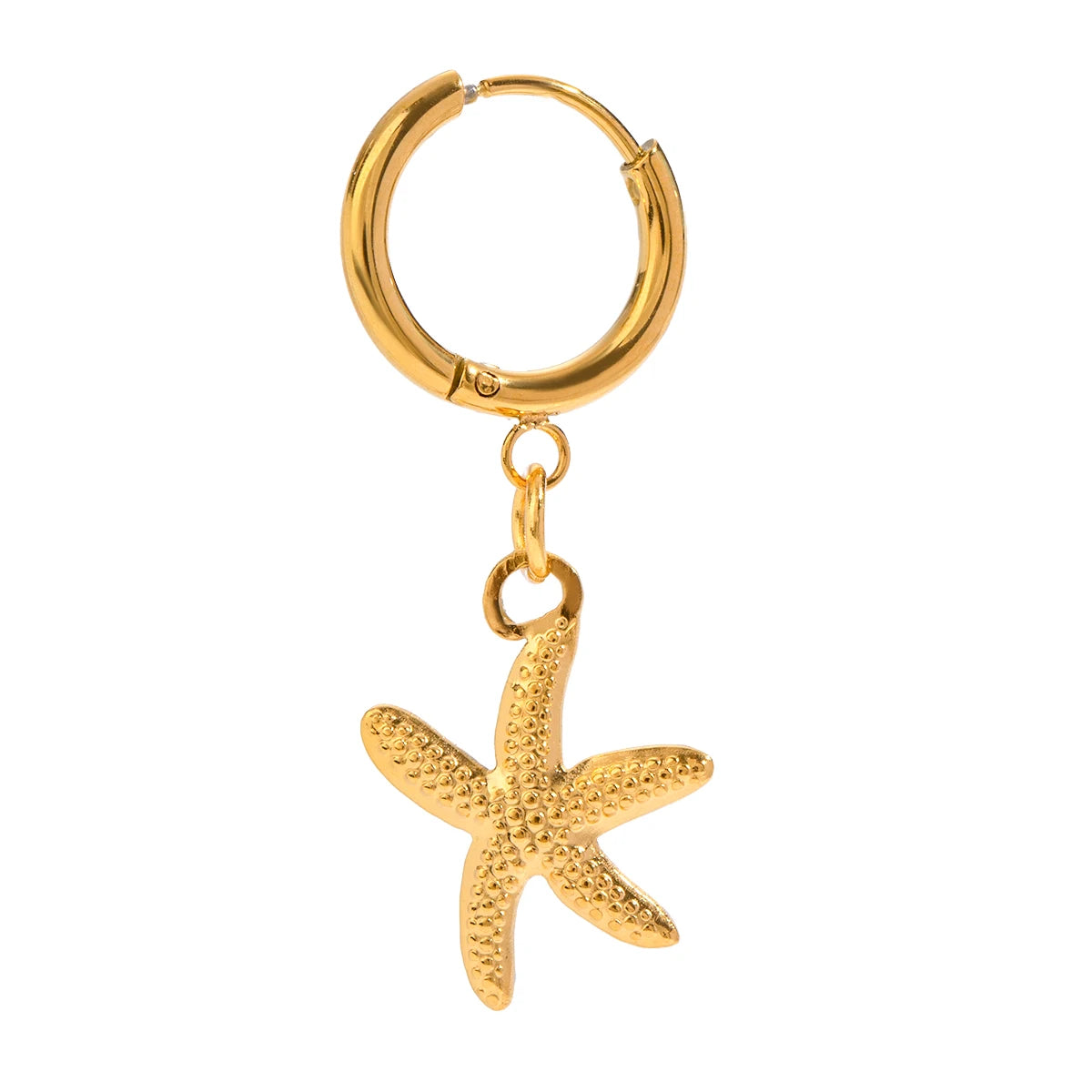 ステンレス304 低ニッケル 水に濡れても錆びにくい 18Kゴールドメッキ ピアス ヒトデ 【YJ01169】