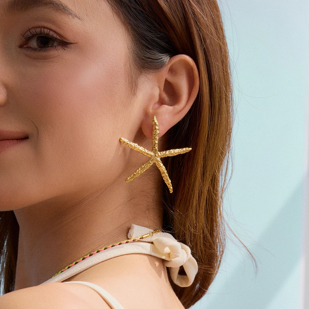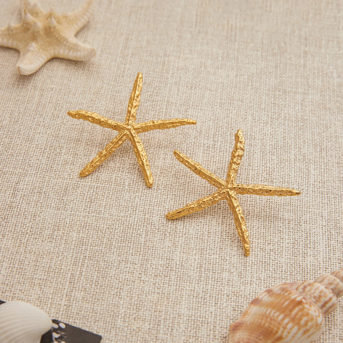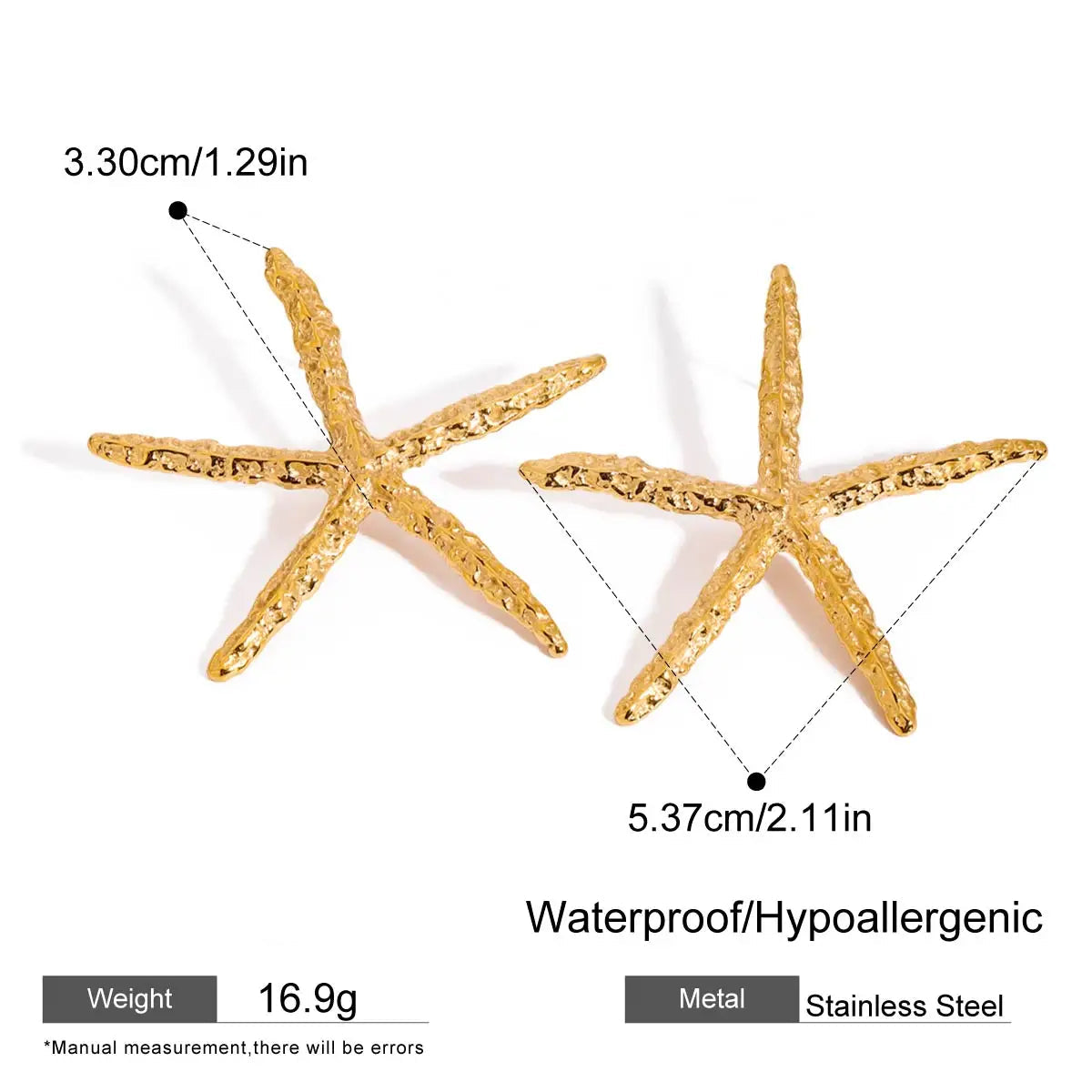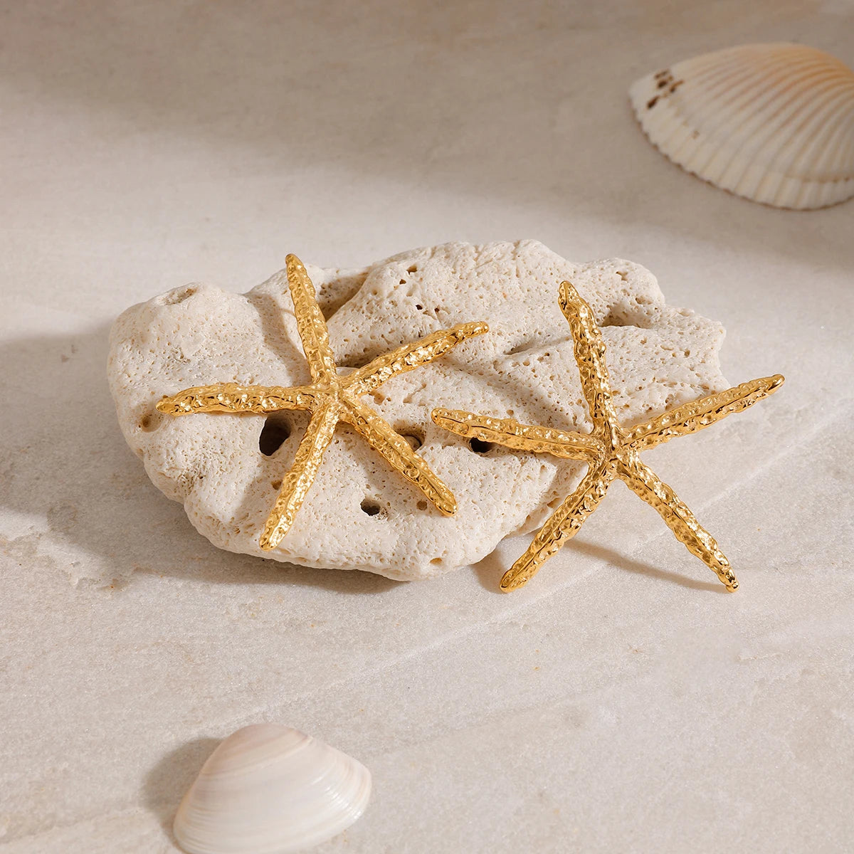 ステンレス304 低ニッケル 水に濡れても錆びにくい 18Kゴールドメッキ ピアス ヒトデ 【YJ01564】