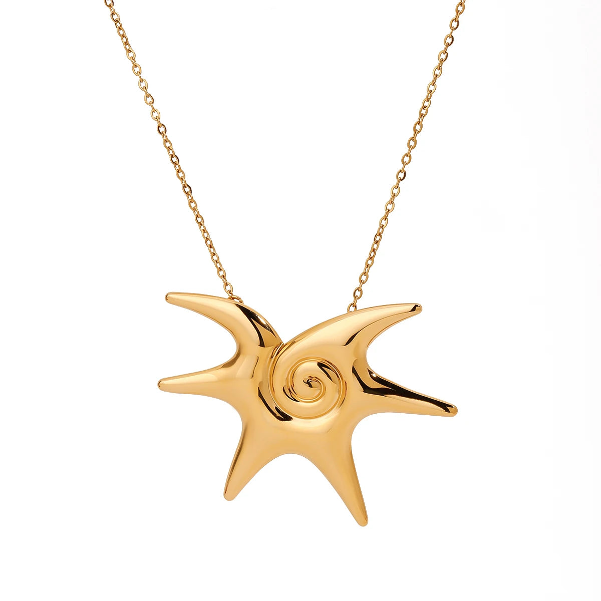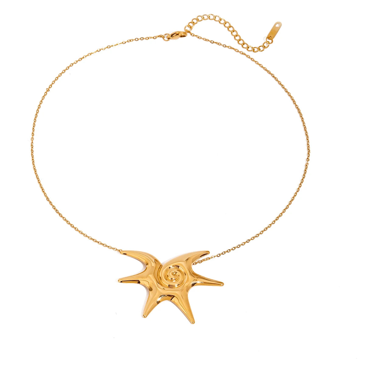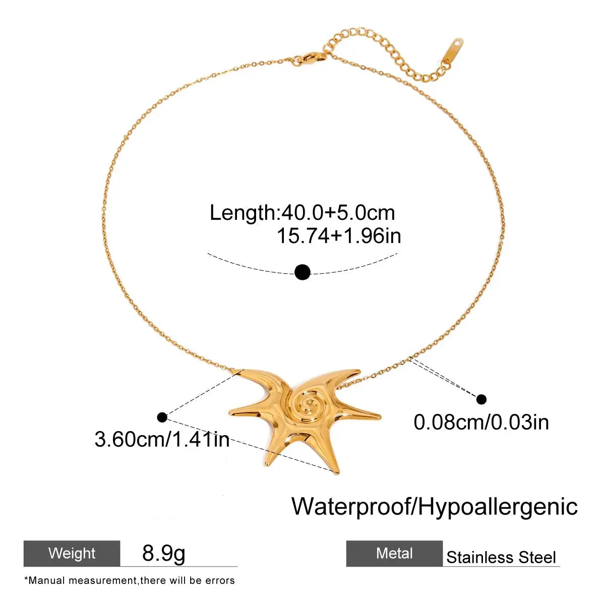 ステンレス304 低ニッケル 水に濡れても錆びにくい 18Kゴールドメッキ ネックレス ヒトデ 【YJ01615】