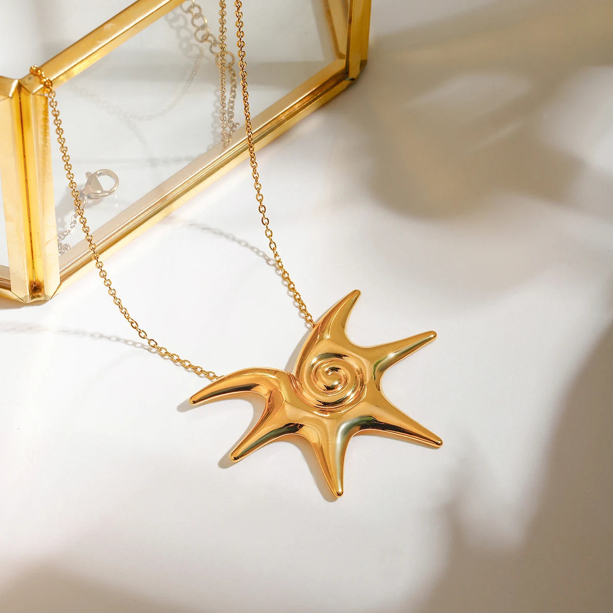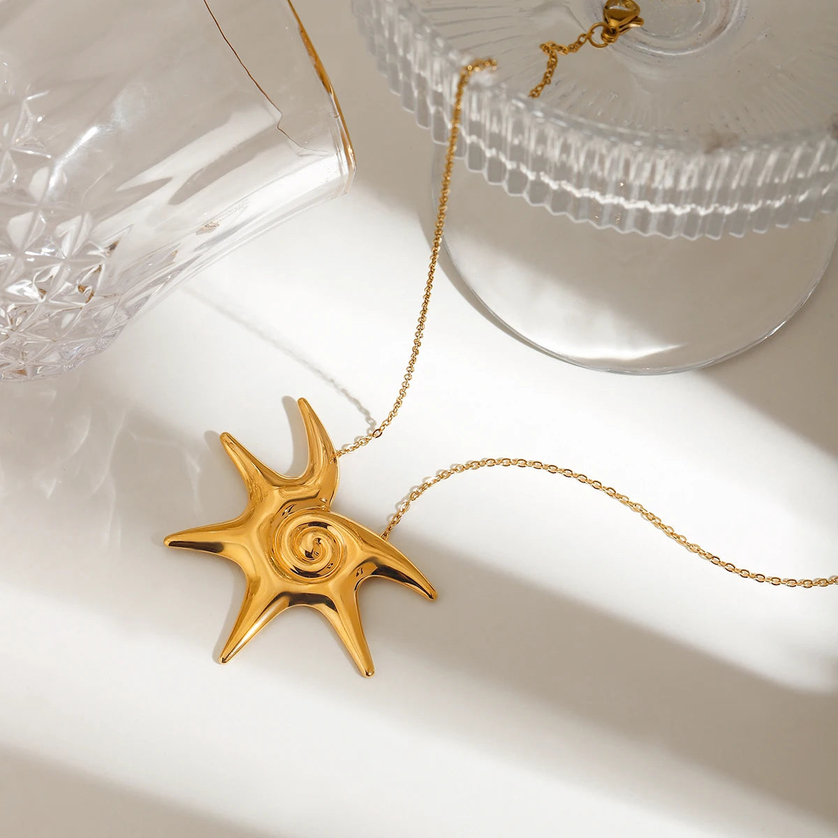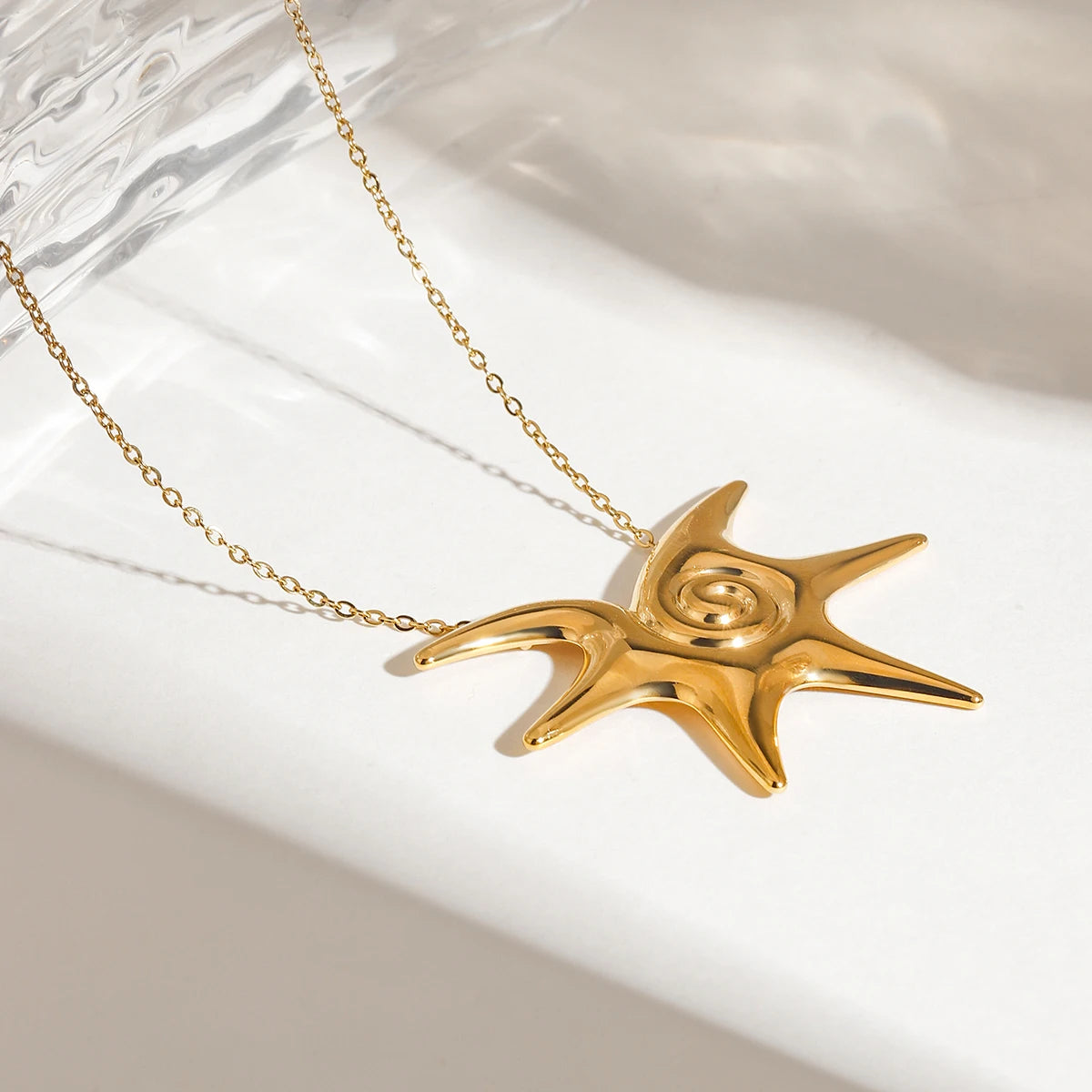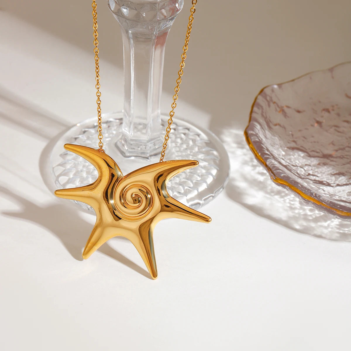 ステンレス304 低ニッケル 水に濡れても錆びにくい 18Kゴールドメッキ ネックレス ヒトデ 【YJ01615】