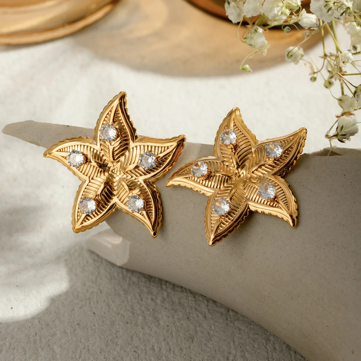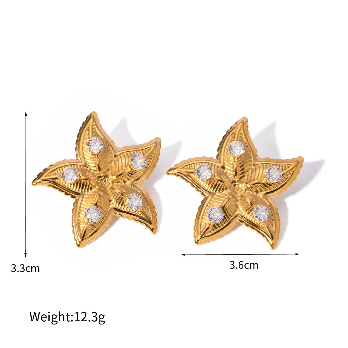 ステンレス304 低ニッケル 水に濡れても錆びにくい 18Kゴールドメッキ ピアス ヒトデ ジルコニア 【YJ02241】