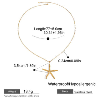 ステンレス304 ニッケルフリー 水に濡れても錆びにくい 18Kゴールドメッキ チャンキー ネックレス ヒトデ 【YJ00336】