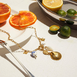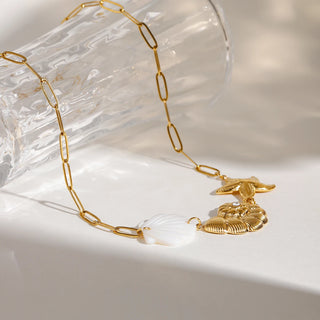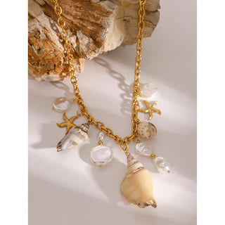 ステンレス304 低ニッケル 水に濡れても錆びにくい 18Kゴールドメッキ ネックレス チャーム シェル 貝殻 ヒトデ 【YJ01419】