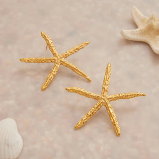 ステンレス304 ニッケルフリー 水に濡れても錆びにくい 18Kゴールドメッキ ピアス ヒトデ 【YJ00499】