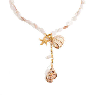 ステンレス304 ニッケルフリー 水に濡れても錆びにくい 18Kゴールドメッキ チェーン ネックレス ヒトデ シェル 貝殻 パール 【YJ00426】