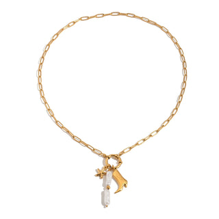 ステンレス304 ニッケルフリー 水に濡れても錆びにくい 18Kゴールドメッキ チェーン チャーム ネックレス ヒトデ パール 【YJ00420】
