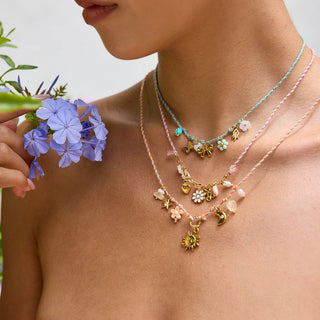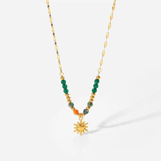 ステンレス304 低ニッケル 水に濡れても錆びにくい 18Kゴールドメッキ ネックレス チェーン 太陽 ターコイズ ビーズ【YJ03553】