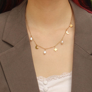 ステンレス304 低ニッケル 水に濡れても錆びにくい 18Kゴールドメッキ ネックレス 3連 月 太陽 【YJ01557】