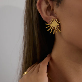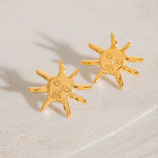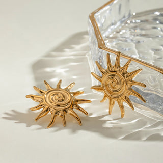 ステンレス304 低ニッケル 水に濡れても錆びにくい 18Kゴールドメッキ ピアス チャンキー 太陽 【YJ03056】