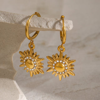 ステンレス304 低ニッケル 水に濡れても錆びにくい 18Kゴールドメッキ ピアス フープ 太陽 【YJ02079】