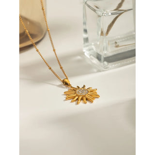 ステンレス304 低ニッケル 水に濡れても錆びにくい 18Kゴールドメッキ ネックレス 太陽 ジルコニア 【YJ02663】