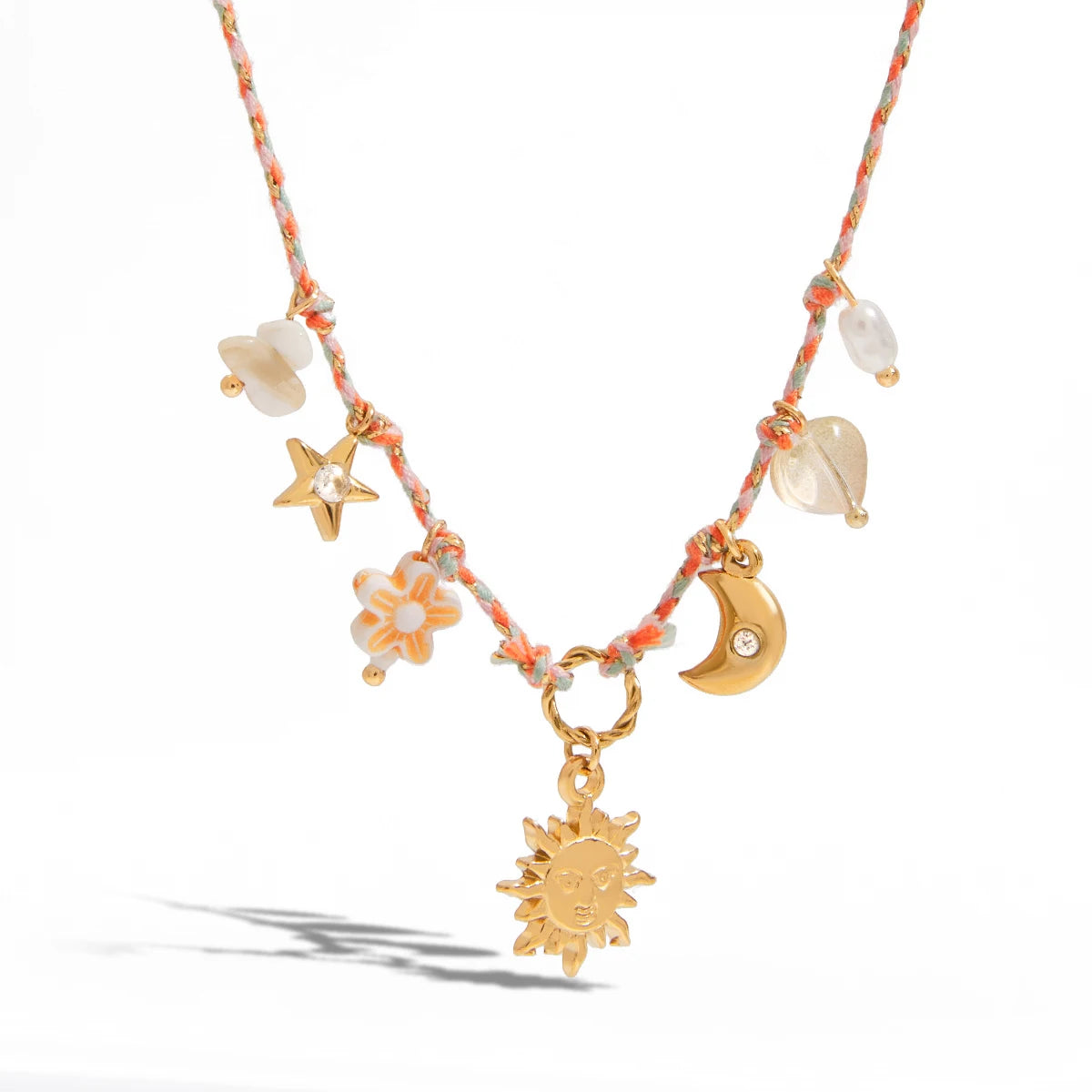 ステンレス304 低ニッケル 水に濡れても錆びにくい 18Kゴールドメッキ ネックレス チャーム 太陽 【YJ01155】