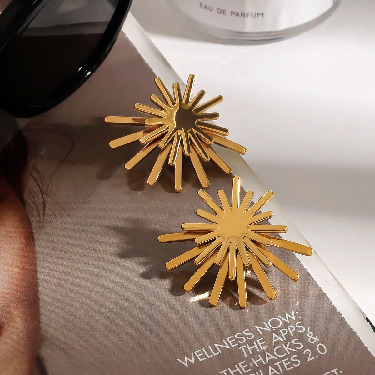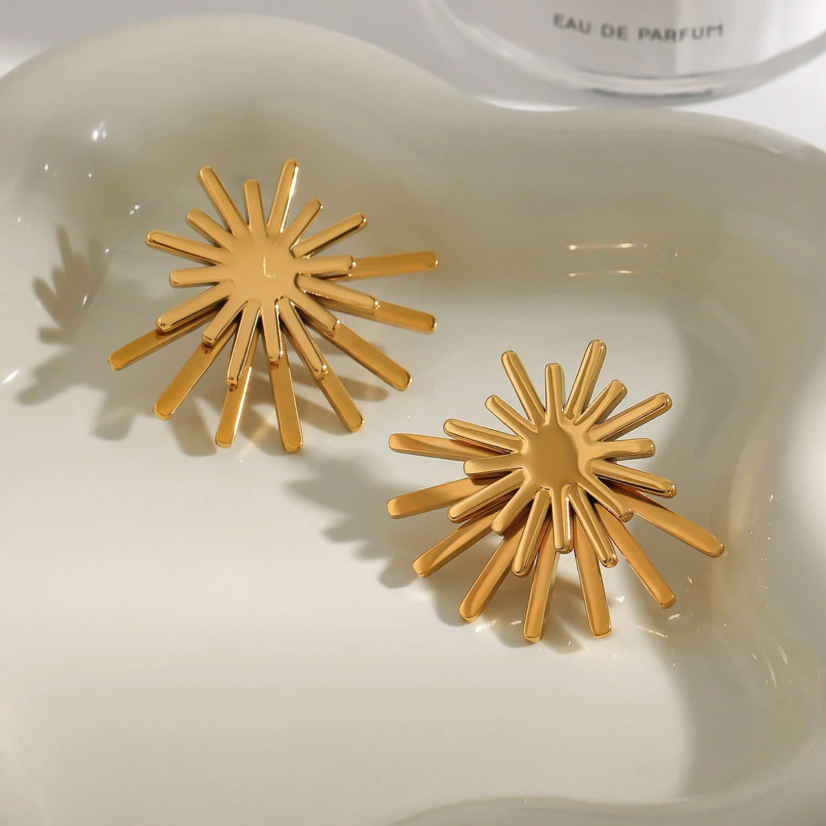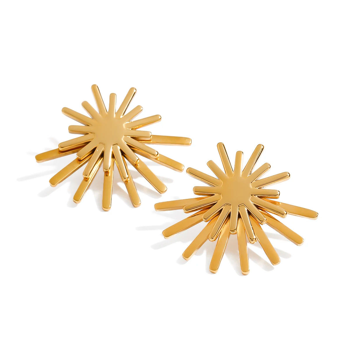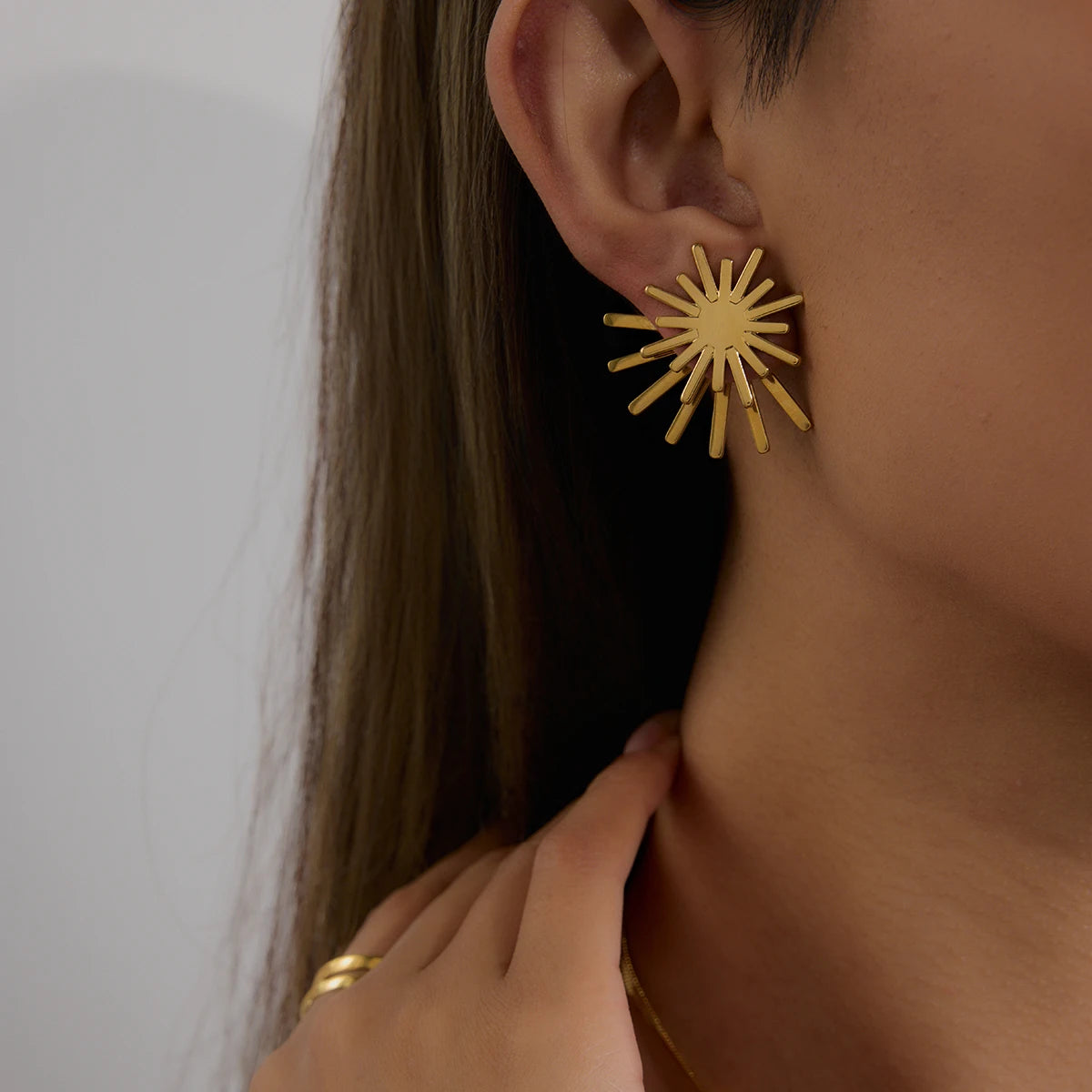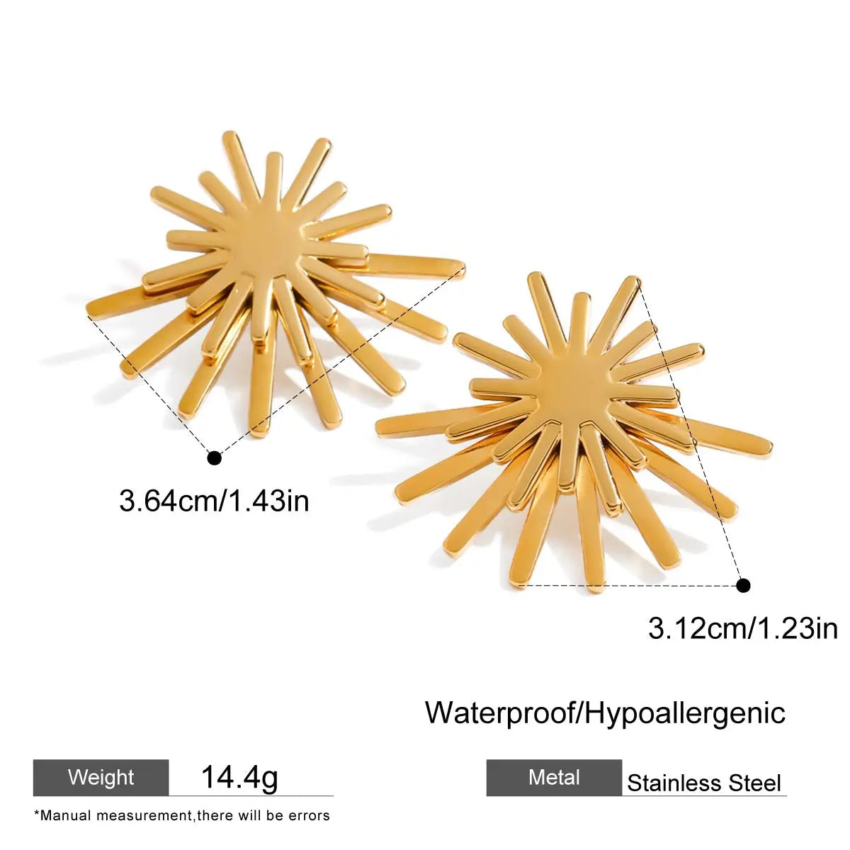 ステンレス304 低ニッケル 水に濡れても錆びにくい 18Kゴールドメッキ ピアス 太陽 【YJ01962】