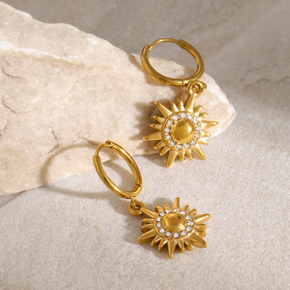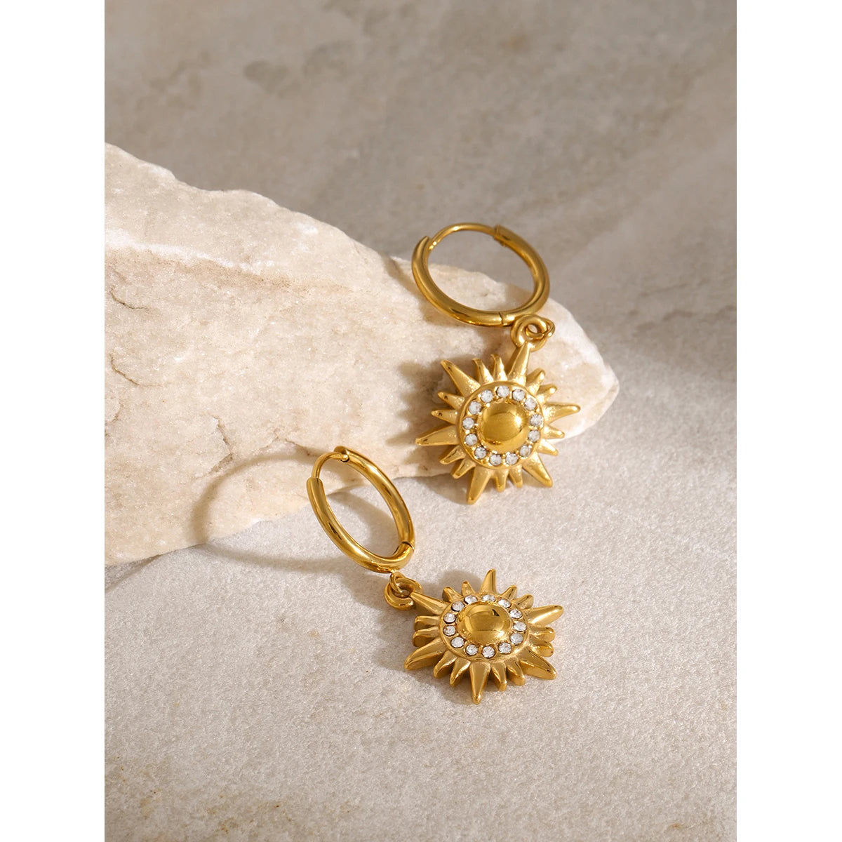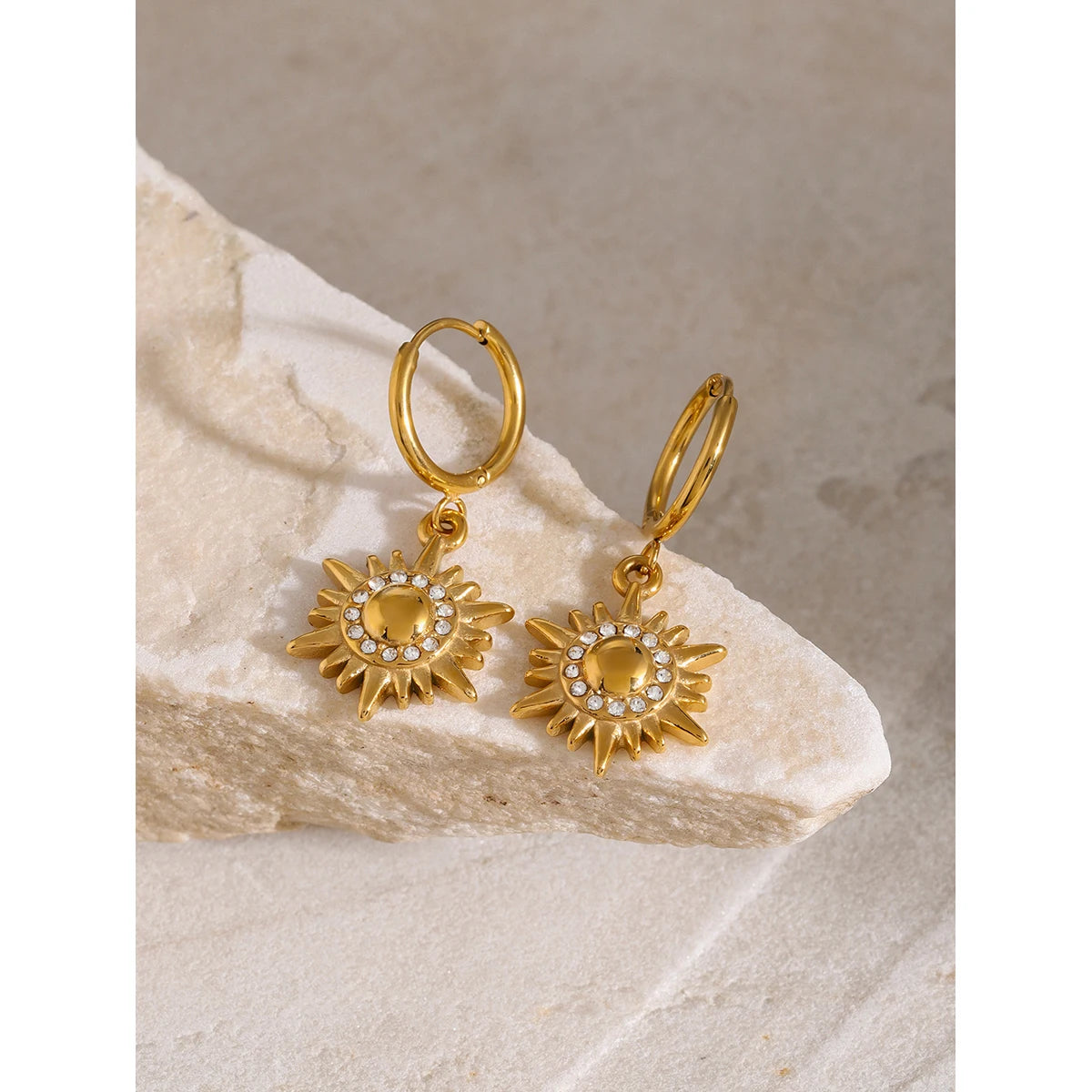 ステンレス304 低ニッケル 水に濡れても錆びにくい 18Kゴールドメッキ ピアス フープ 太陽 【YJ02079】