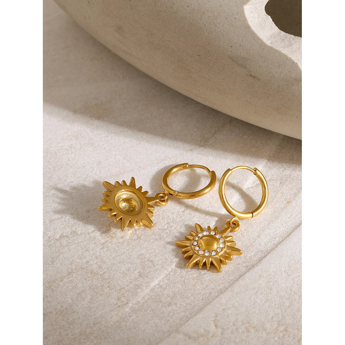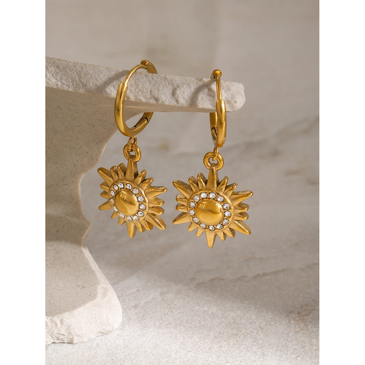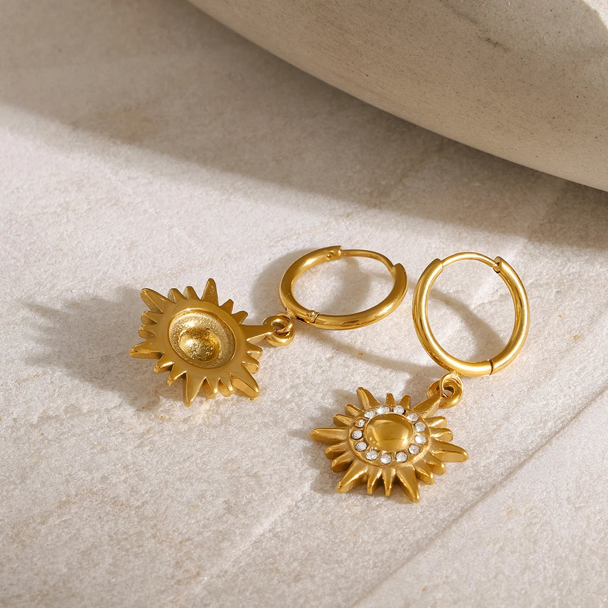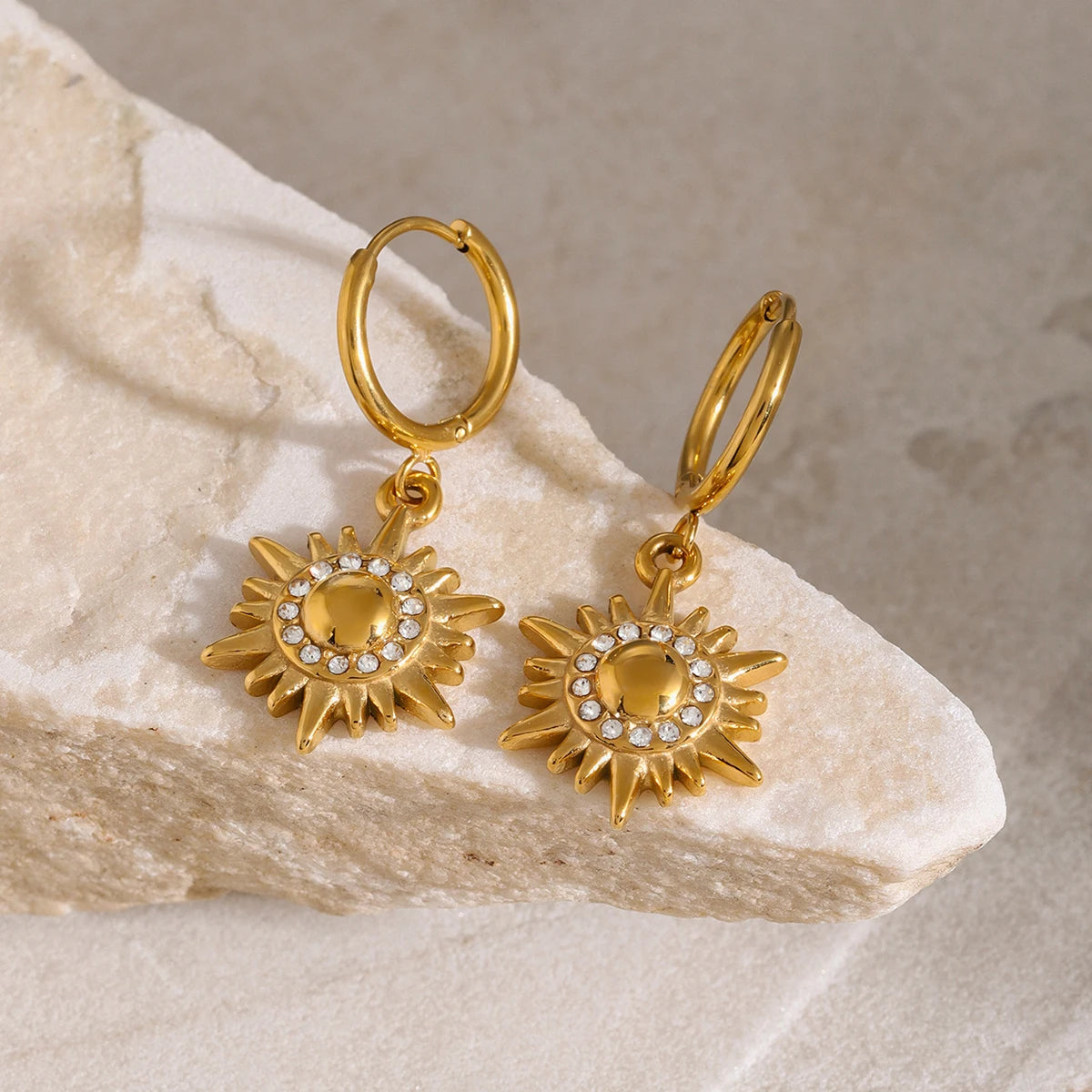 ステンレス304 低ニッケル 水に濡れても錆びにくい 18Kゴールドメッキ ピアス フープ 太陽 【YJ02079】