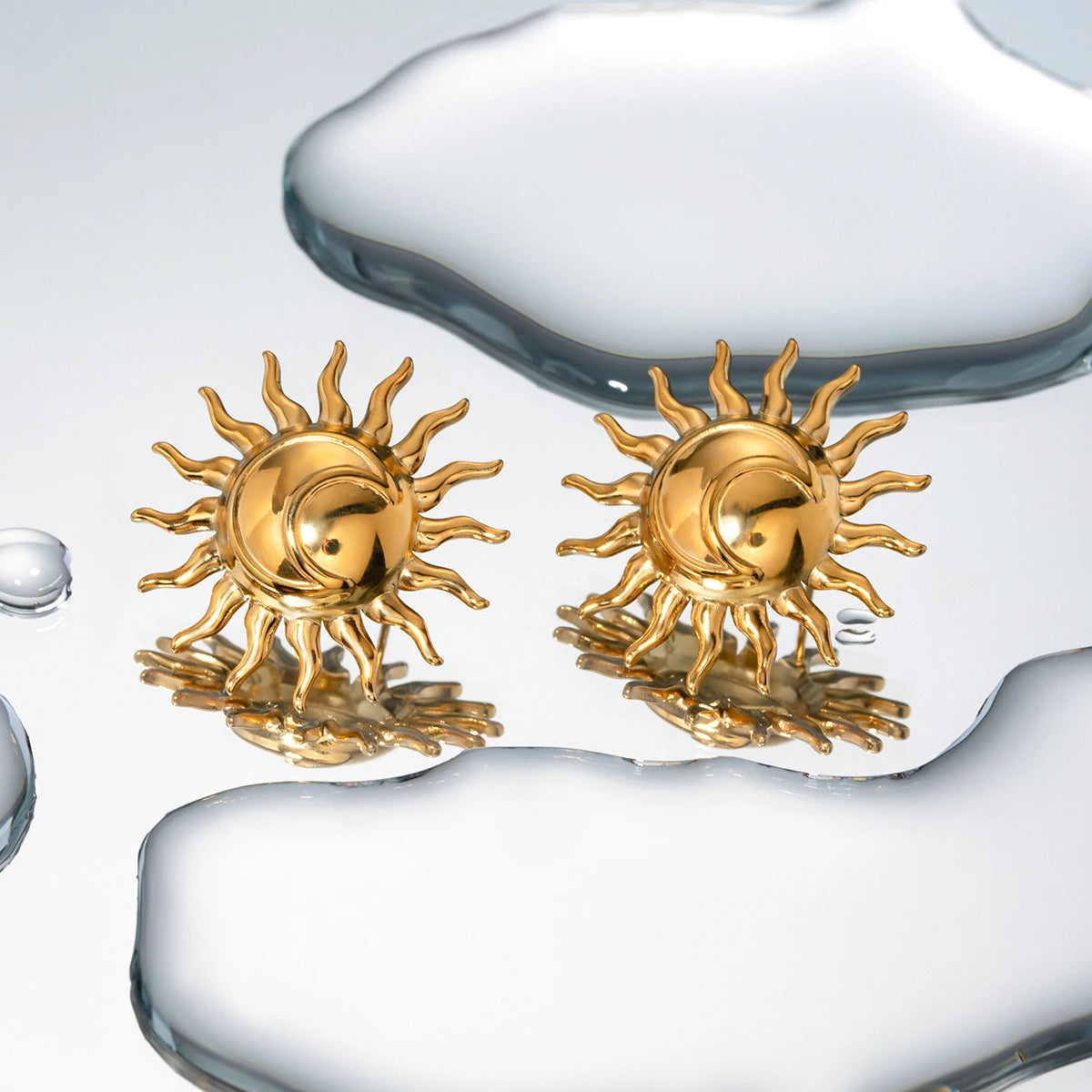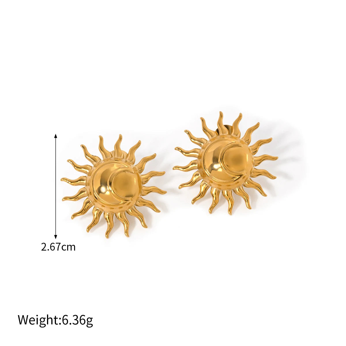 ステンレス304 低ニッケル 水に濡れても錆びにくい 18Kゴールドメッキ ピアス 太陽 【YJ02347】